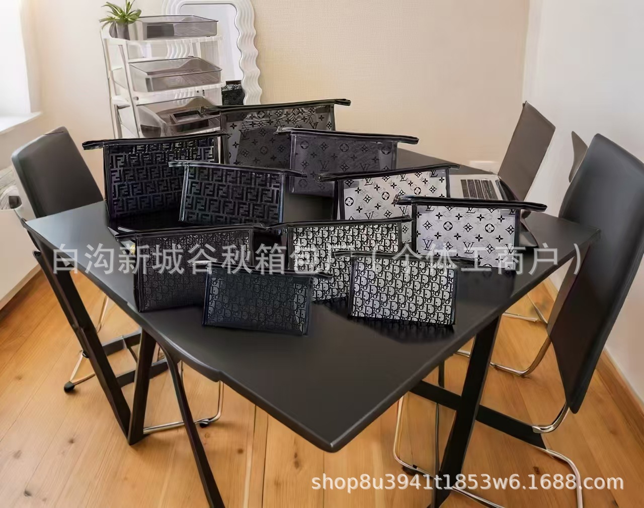 대형 브랜드 메쉬 인쇄 화장품 가방-매일 세탁 및 보관 가방-남성과 여성의 편리한 여행 및 비즈니스 클러치 백스토어 가기