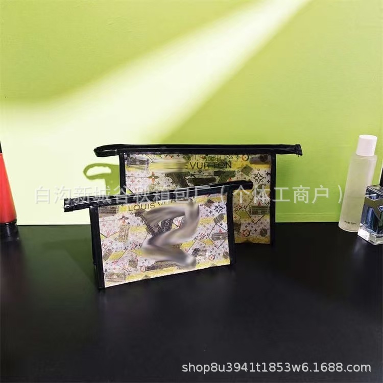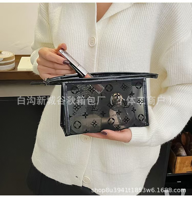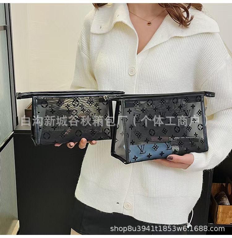 대형 브랜드 메쉬 인쇄 화장품 가방-매일 세탁 및 보관 가방-남성과 여성의 편리한 여행 및 비즈니스 클러치 백