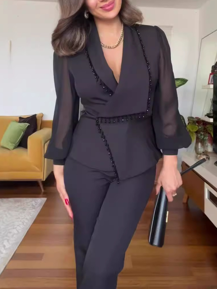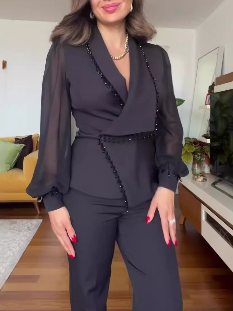 2025 여름 신상 패션 햅번 스타일 하이웨이스트 와이드 레그 점프수트 슬리밍 라펠 탑 점프수트