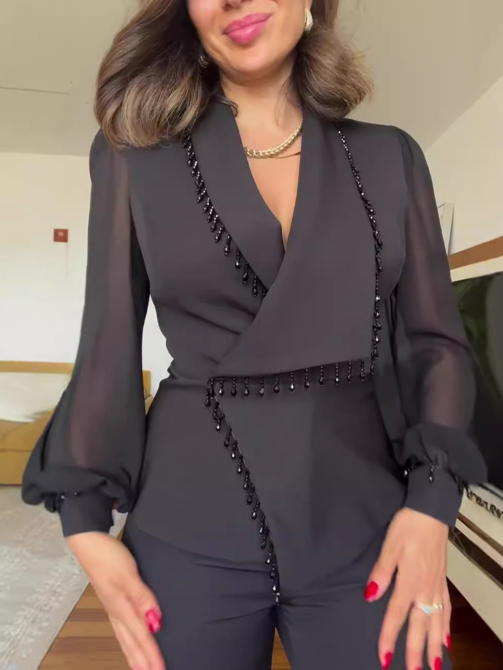 2025 여름 신상 패션 햅번 스타일 하이웨이스트 와이드 레그 점프수트 슬리밍 라펠 탑 점프수트스토어 가기
