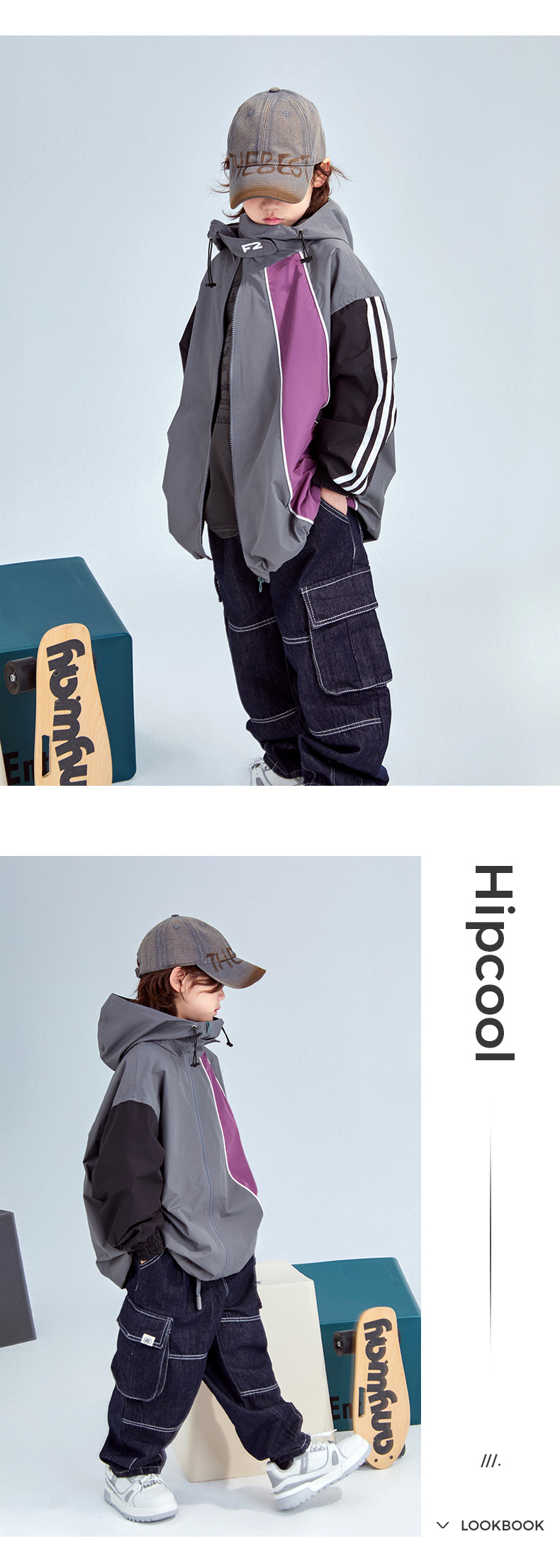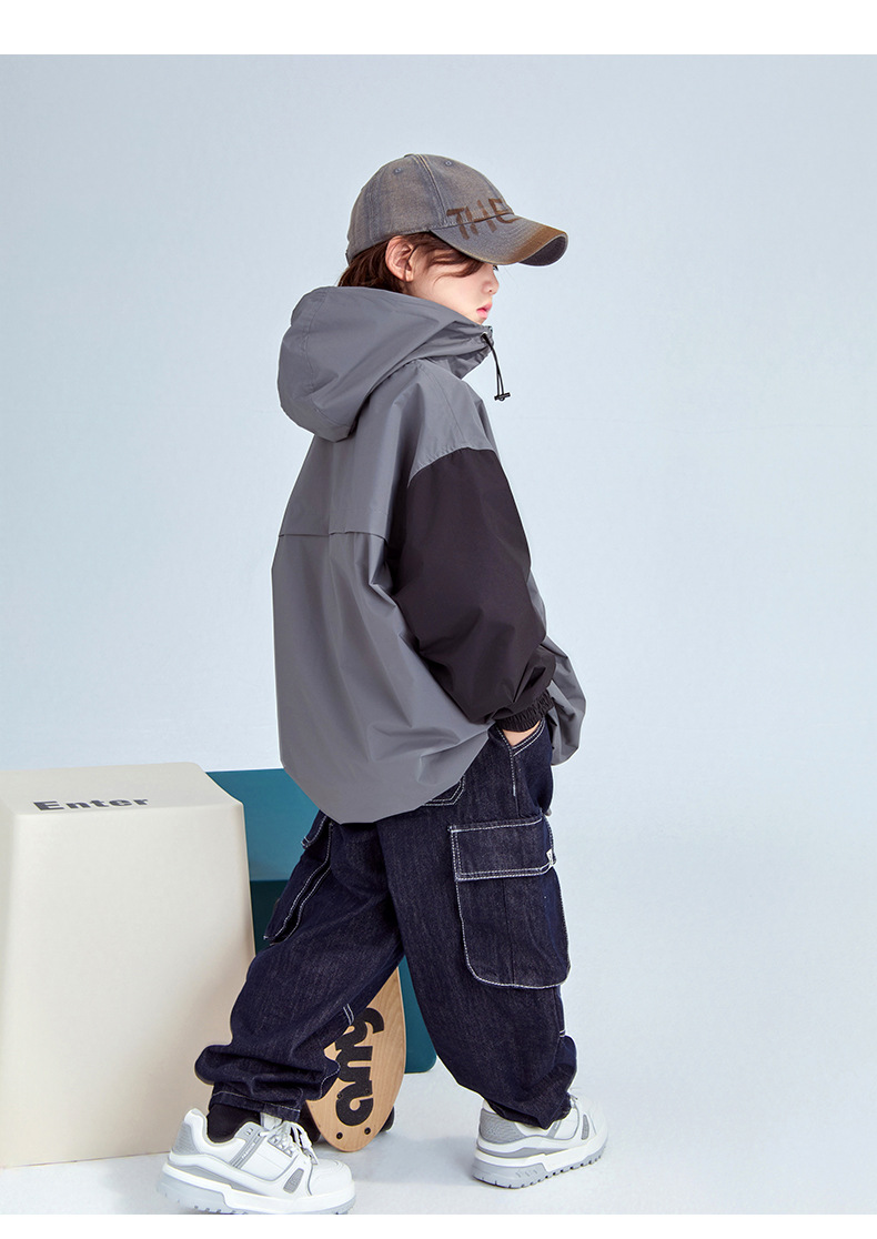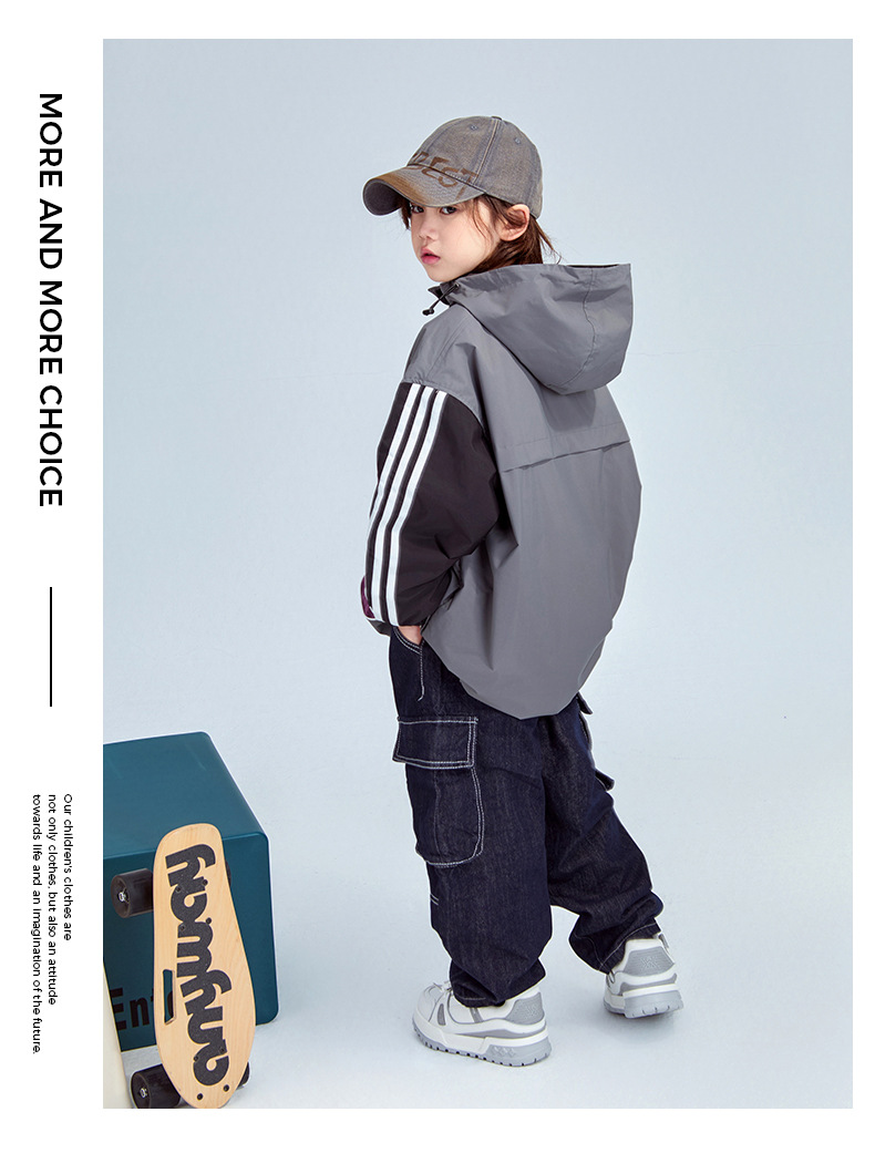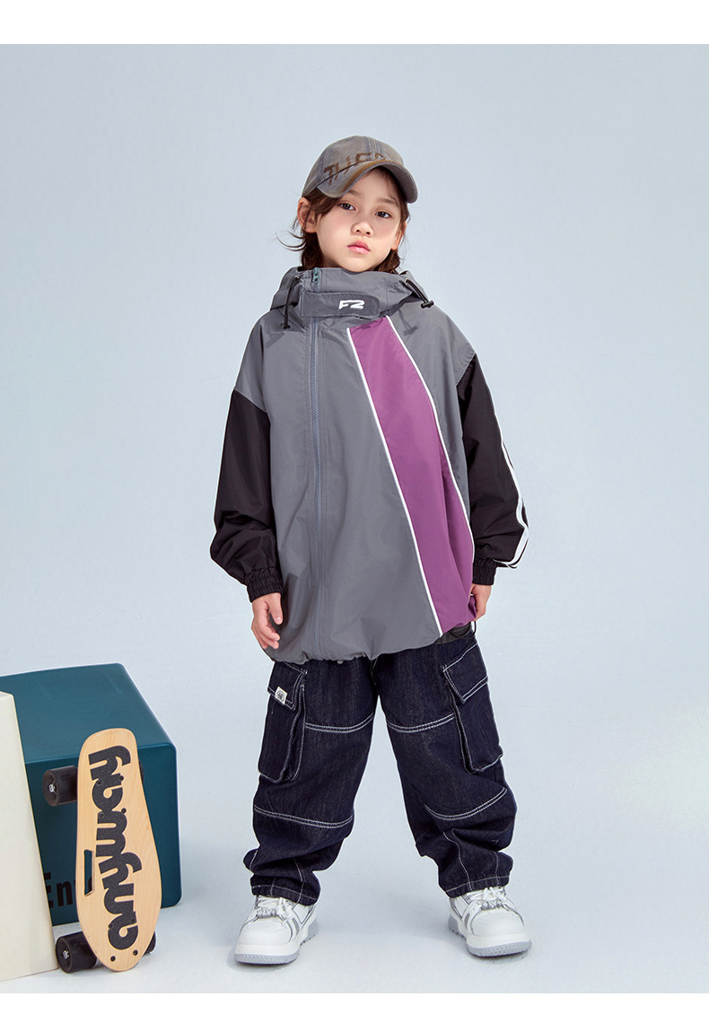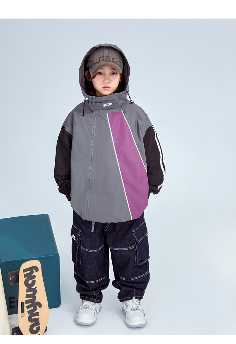 FULONGZAI 부모-자식 아동복 2025 봄 중대형 남성 및 여성 아동용 루즈 자켓 방풍 자켓 아웃도어 자켓