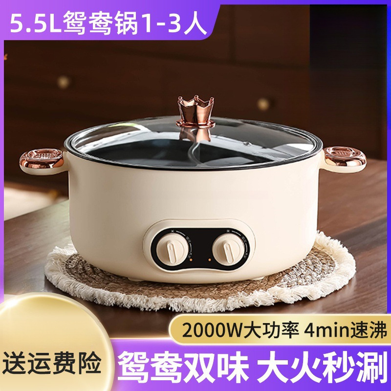 양양 냄비 뜨거운 냄비 가정용 다기능 원피스 찜 및 요리 구이 고기 전기 뜨거운 냄비 전기 요리 냄비 기숙사 전기 냄비