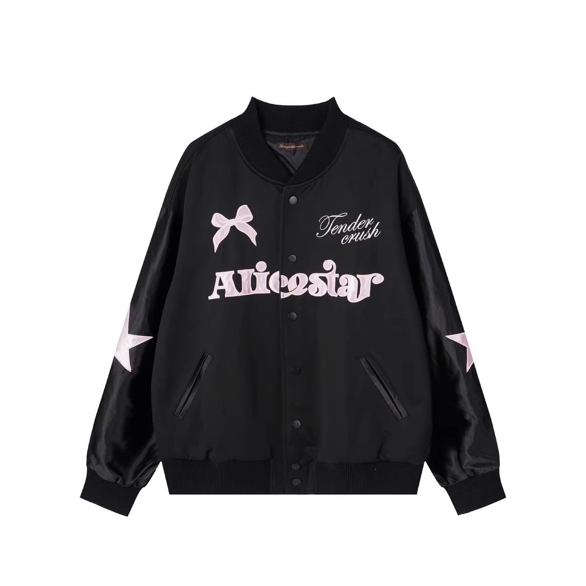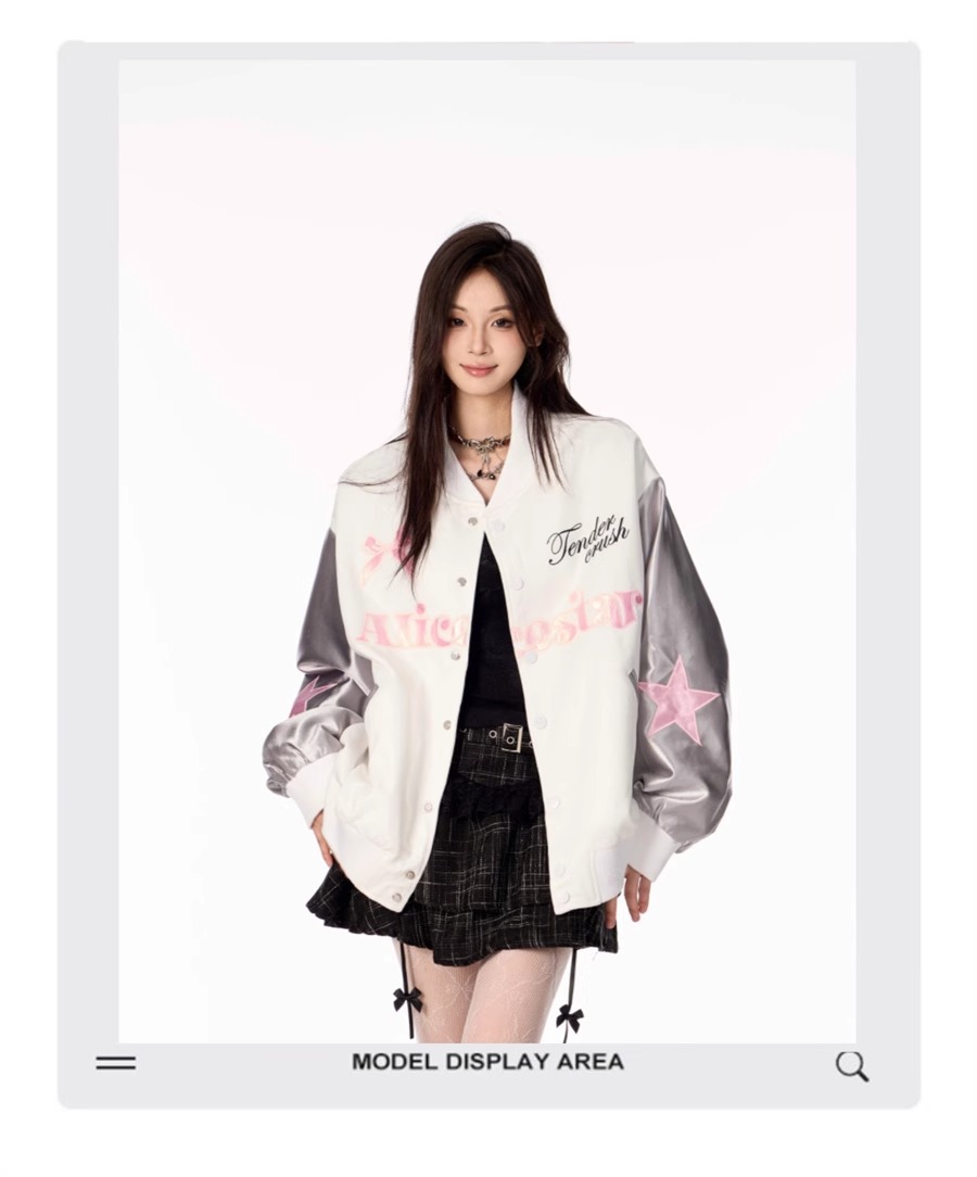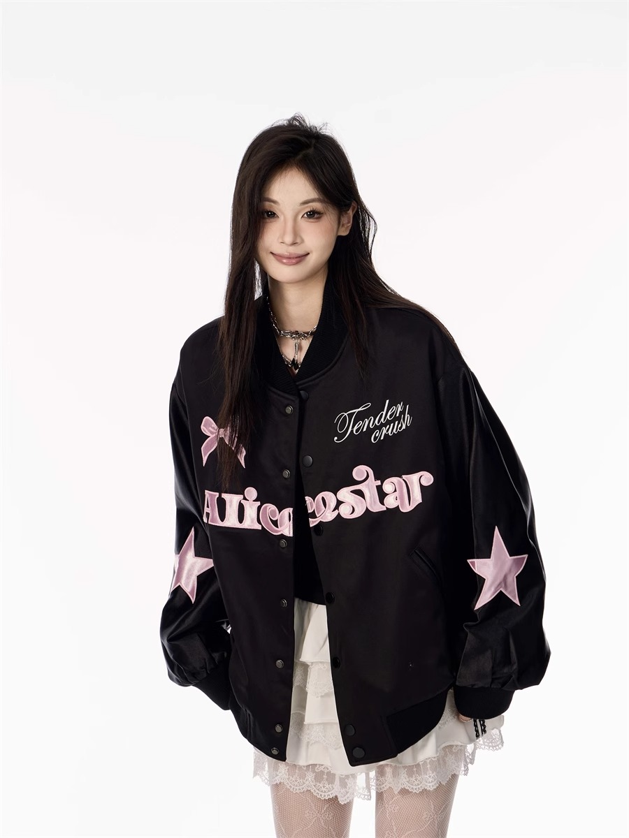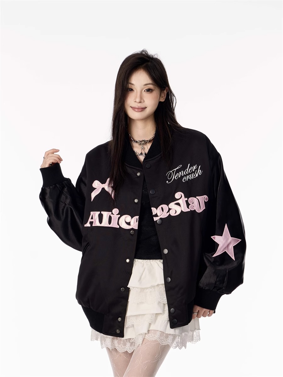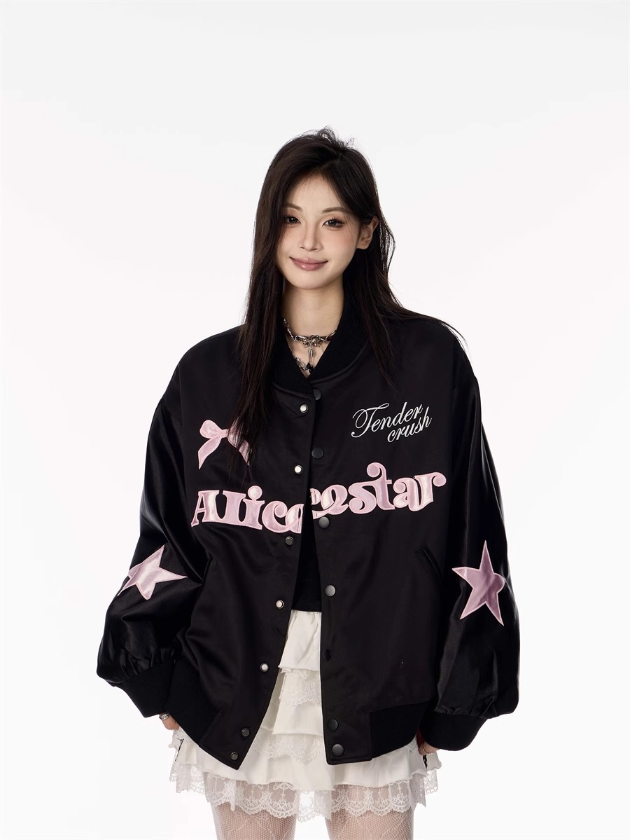 봄과 가을 새로운 미국 스타일 활 자수 야구 세트 코트 여성 달콤한 쿨 스파이스 소녀 한국 스타일 명암 컬러 재킷 트렌디스토어 가기
