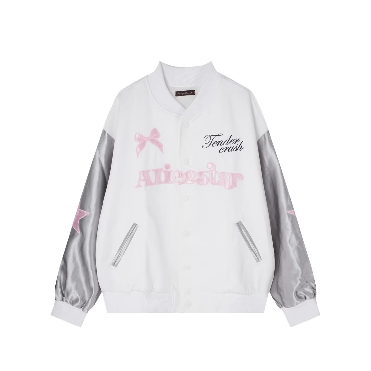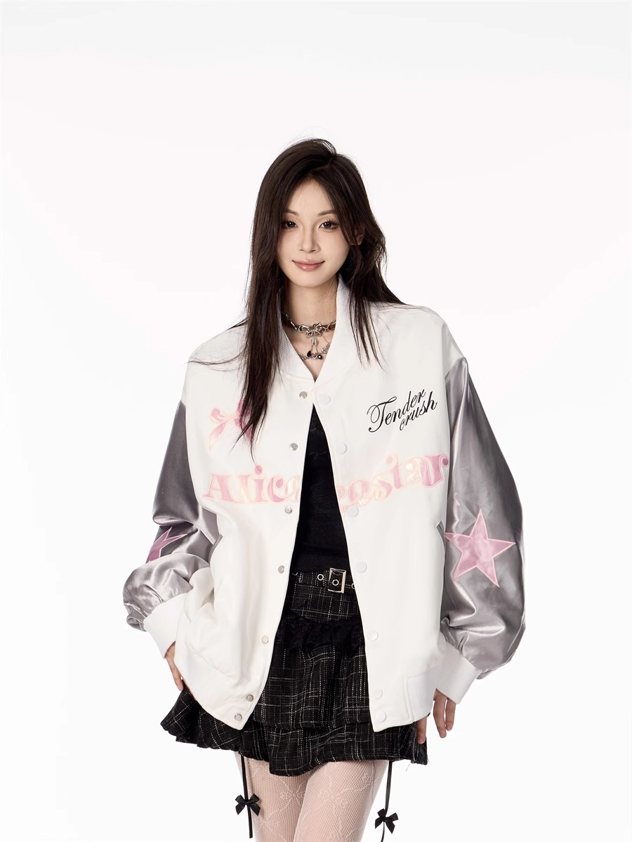 봄과 가을 새로운 미국 스타일 활 자수 야구 세트 코트 여성 달콤한 쿨 스파이스 소녀 한국 스타일 명암 컬러 재킷 트렌디
