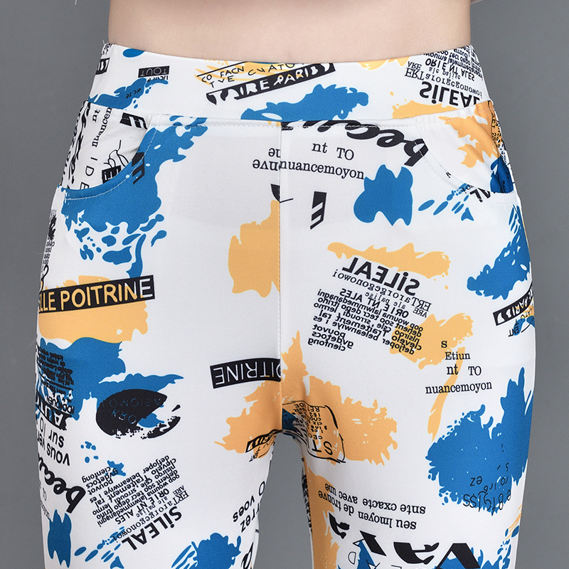 인쇄 된 2025 년 여름 새로운 스트레치 캐주얼 탄성 허리 컬러 바지 슬리밍 타이트한 바지 격자 무늬 바지 여성용 바지