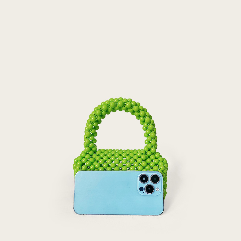 가을과 겨울 새로운 수제 짠 가방 구슬 가방 녹색 구슬 가방 귀여운 미니 핸드백스토어 가기