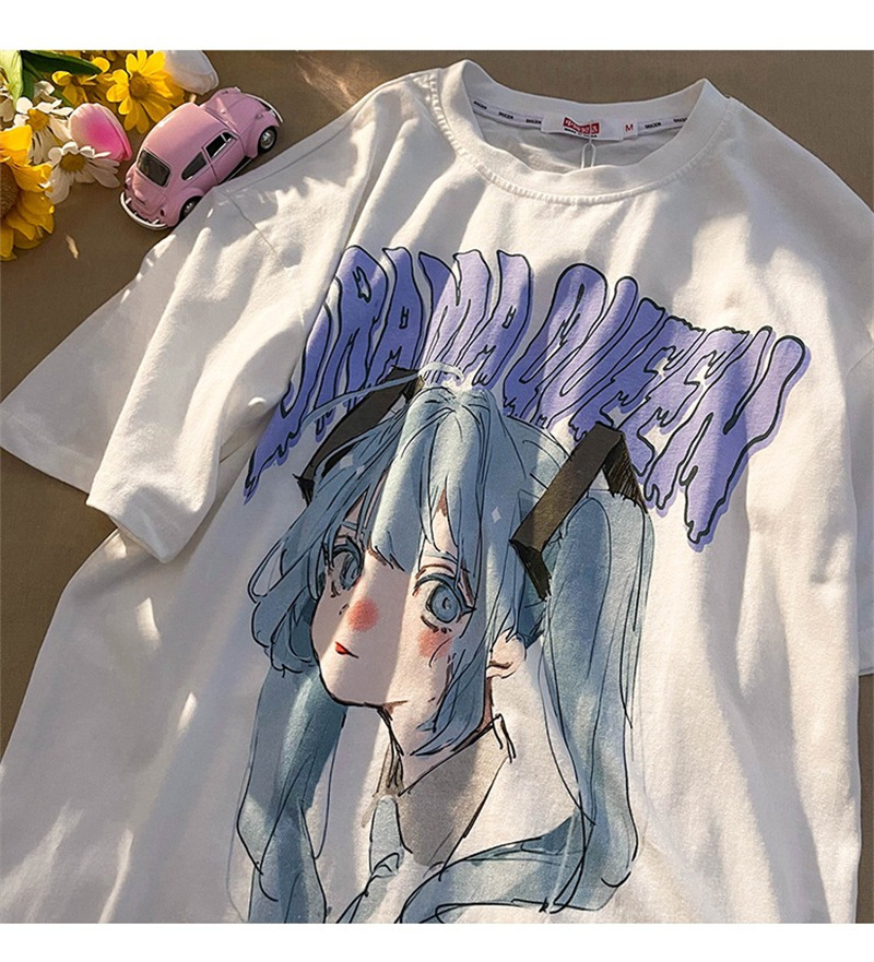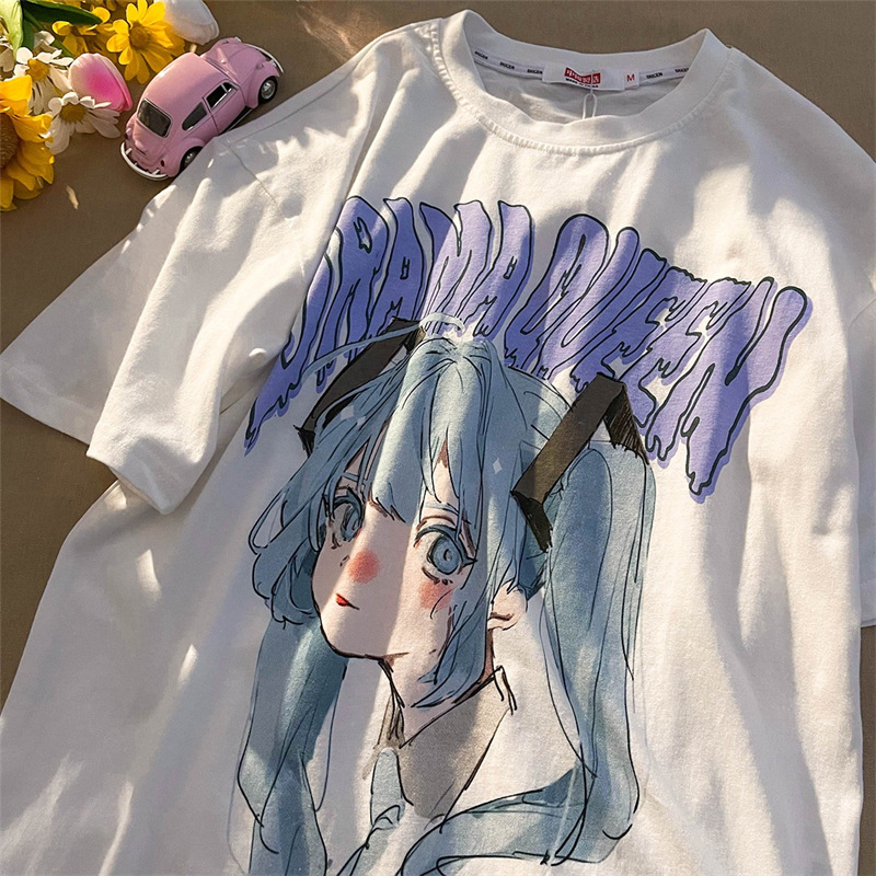 일본식 2 차원 JK 소녀 애니메이션 인쇄 반팔 티셔츠 여성용 스위트 칼리지 스타일 루즈 캐주얼 올 매치 반소매 티셔츠스토어 가기
