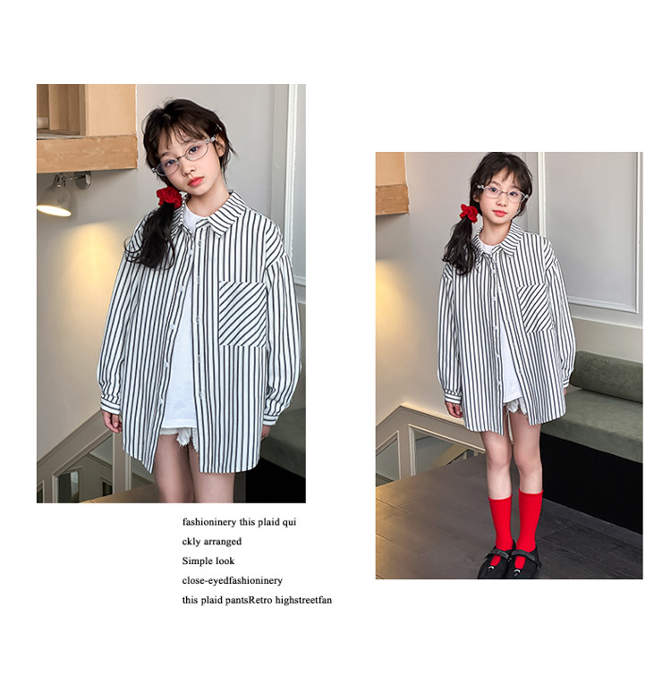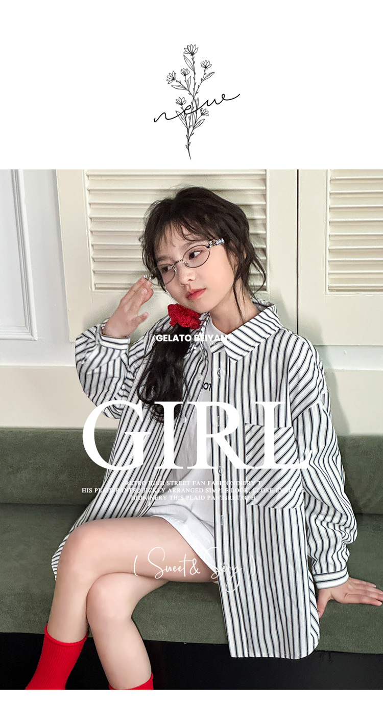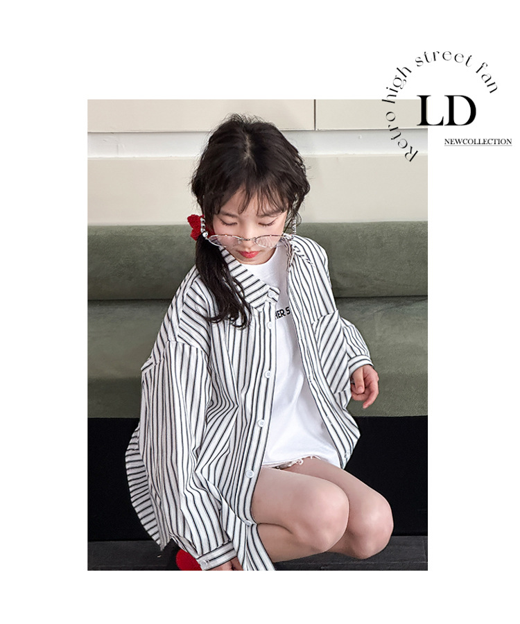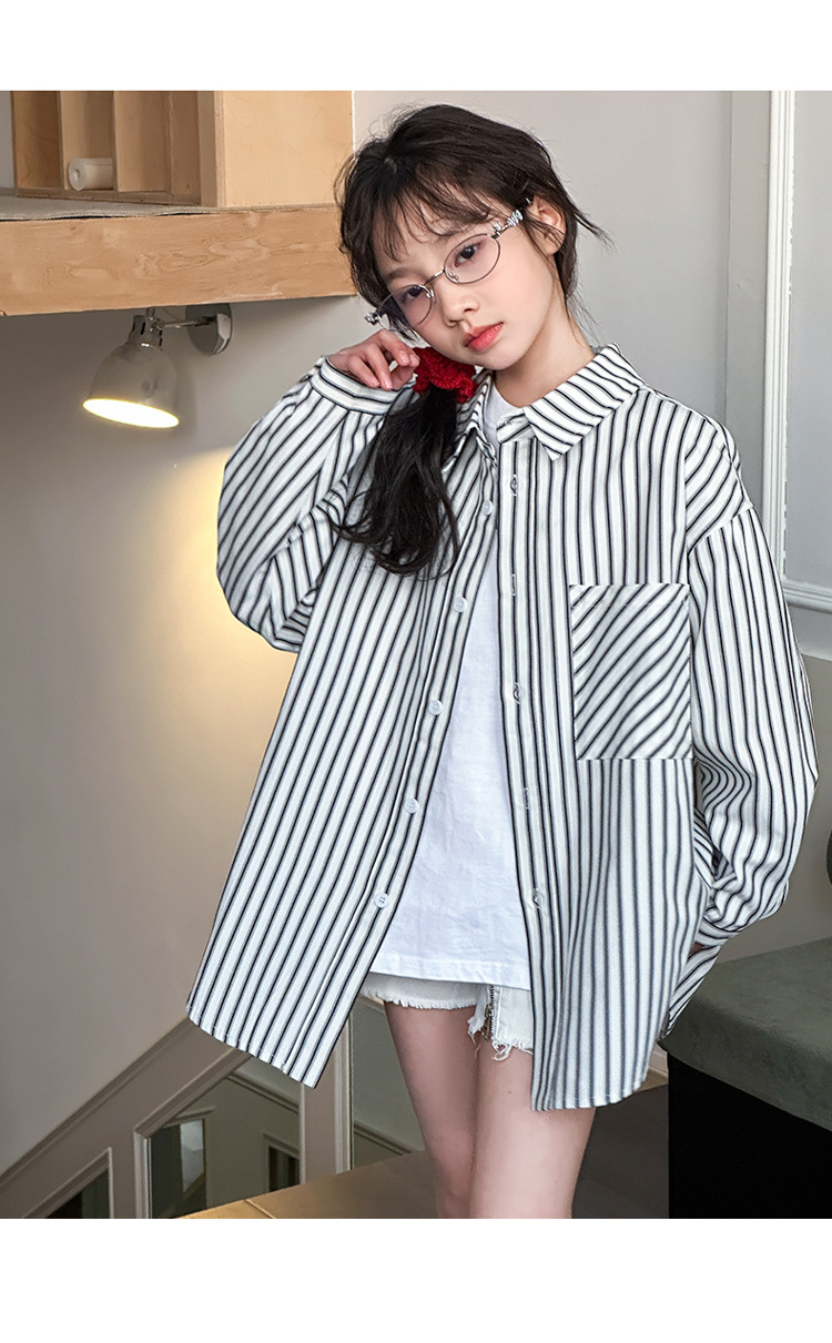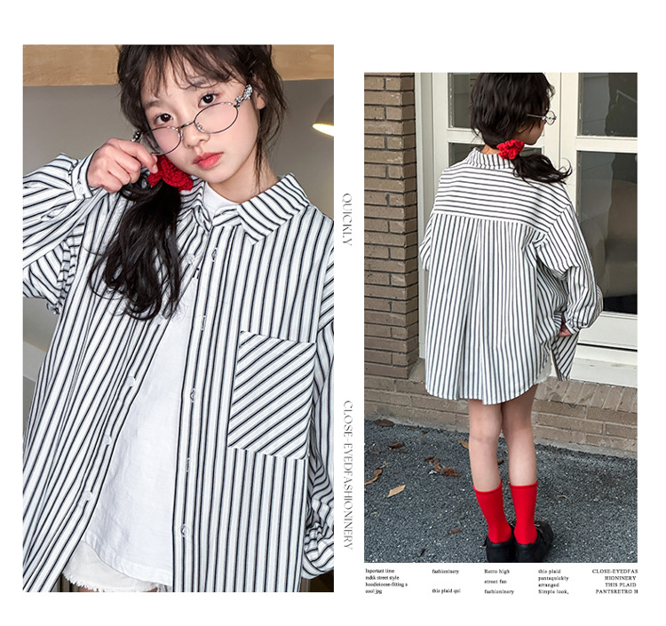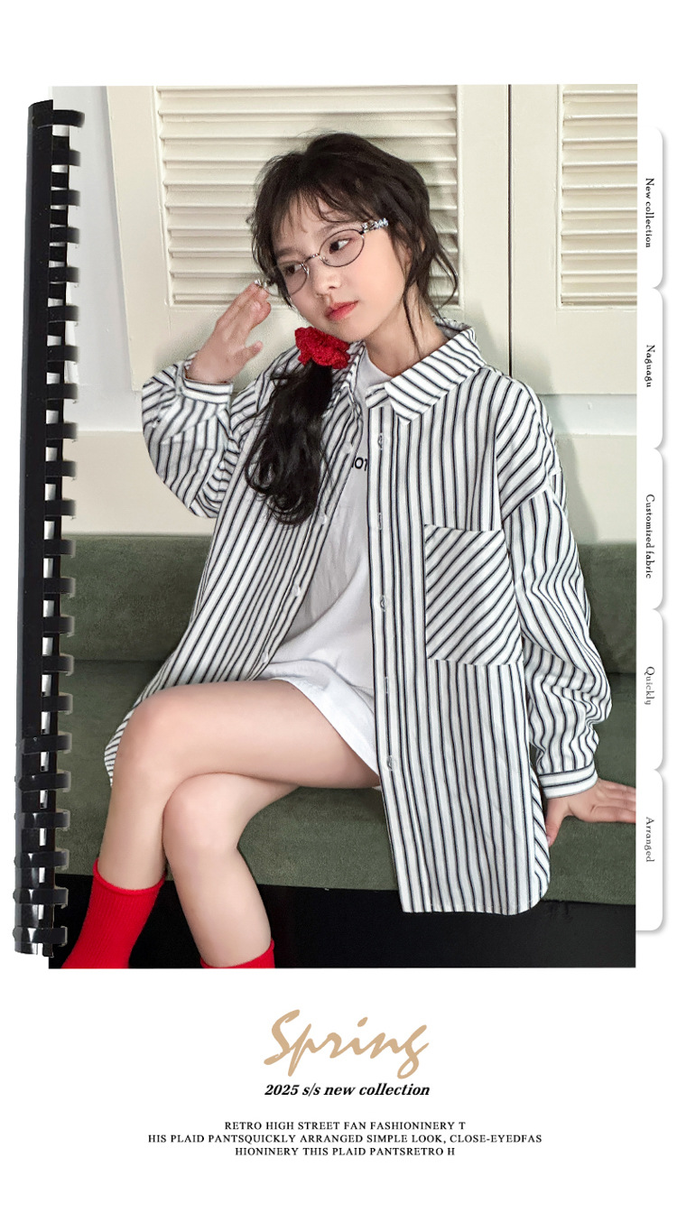 소녀 봄 줄무늬 셔츠 코트 2025 새로운 어린이 서양 스타일 캐주얼 스포츠 재킷 윈드 브레이커 봄과 가을 패션스토어 가기