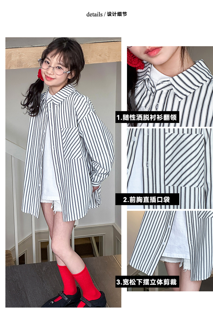 소녀 봄 줄무늬 셔츠 코트 2025 새로운 어린이 서양 스타일 캐주얼 스포츠 재킷 윈드 브레이커 봄과 가을 패션