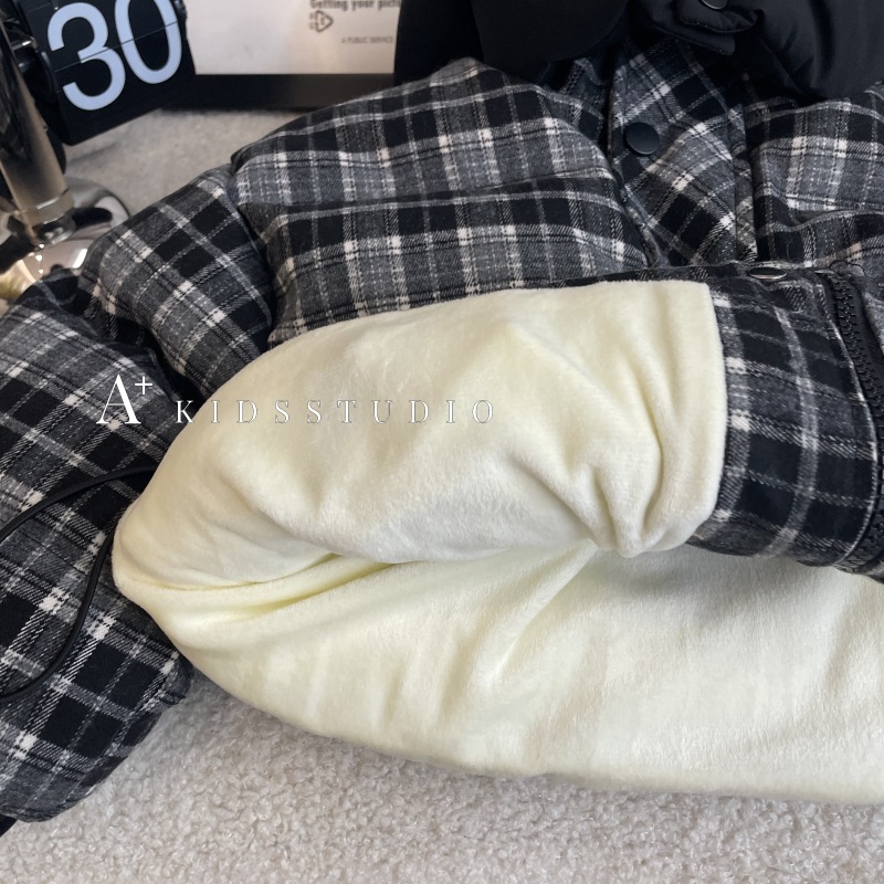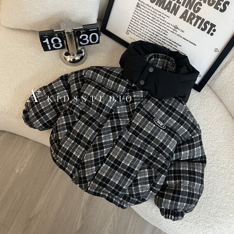 2025 어린이 새로운 후드 체크 무늬 아동복 아동면 코트 트렌드 겨울 패션스토어 가기