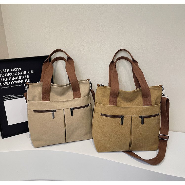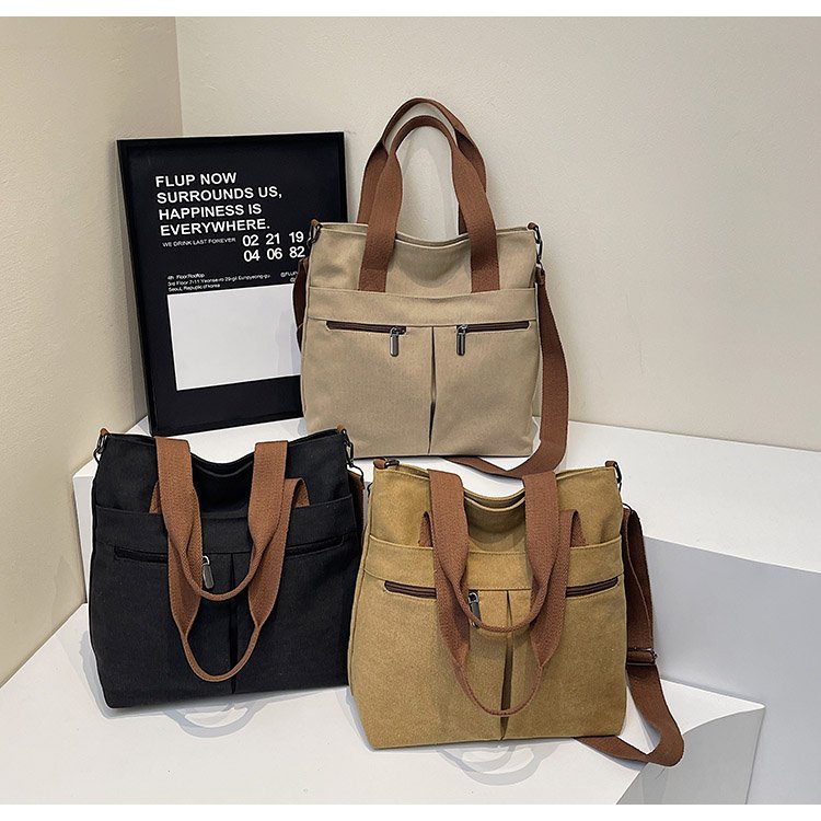 大容量帆布包女秋冬时尚百搭逛街购物手提袋大学生通勤单肩托特包