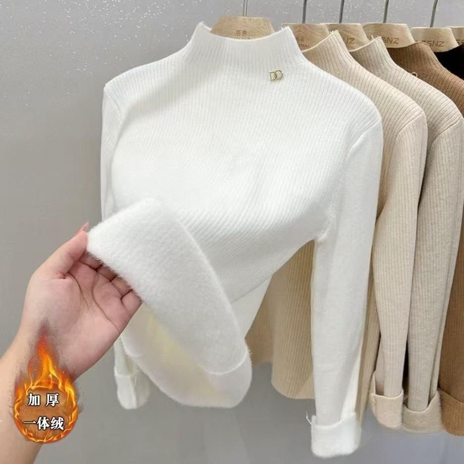 기모 두꺼운 원피스 반터틀넥 스웨터 여성의 가을과 겨울 2025 새로운 니트 내베이스 셔츠 탑