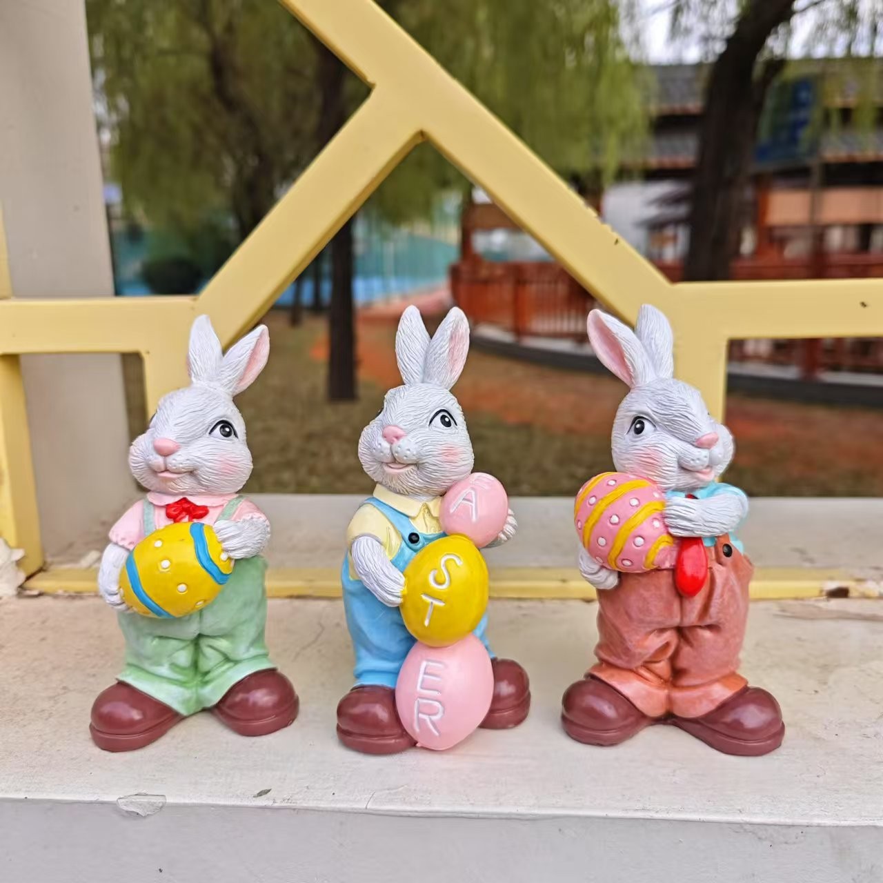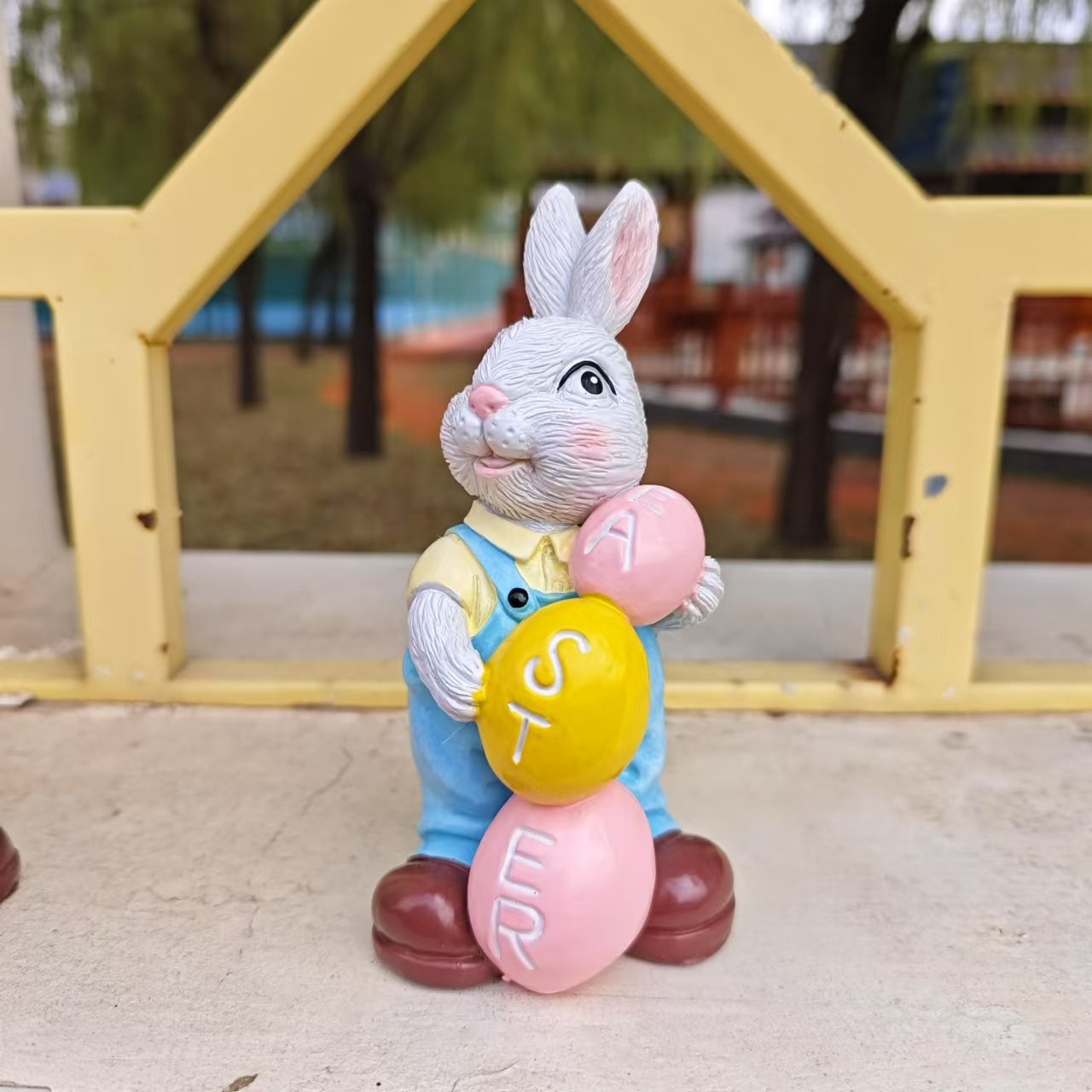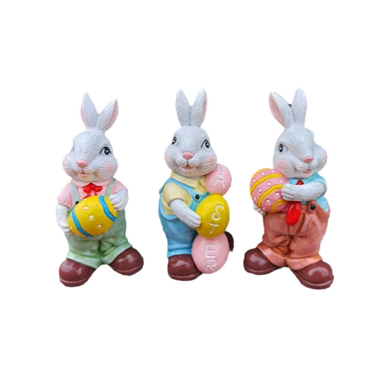 국경 간 새로운 부활절 달걀 토끼 동상 장식 홈 안뜰 만화 포옹 토끼 수지 장식품