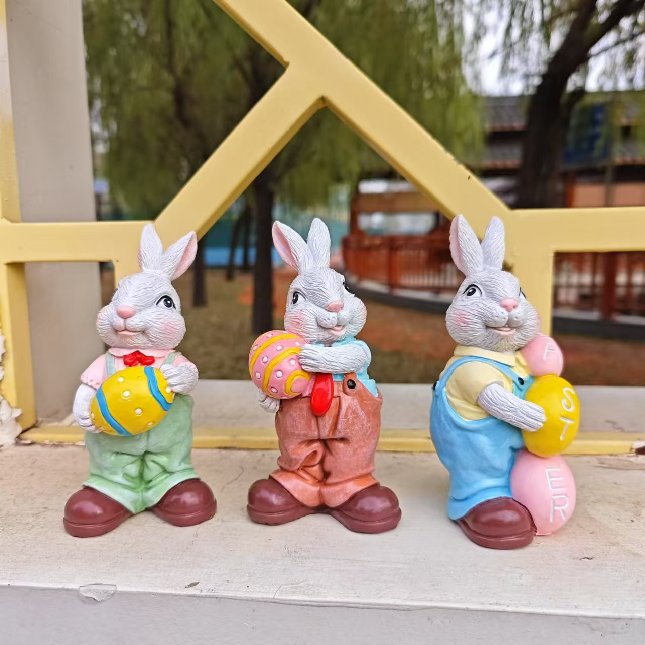 국경 간 새로운 부활절 달걀 토끼 동상 장식 홈 안뜰 만화 포옹 토끼 수지 장식품스토어 가기