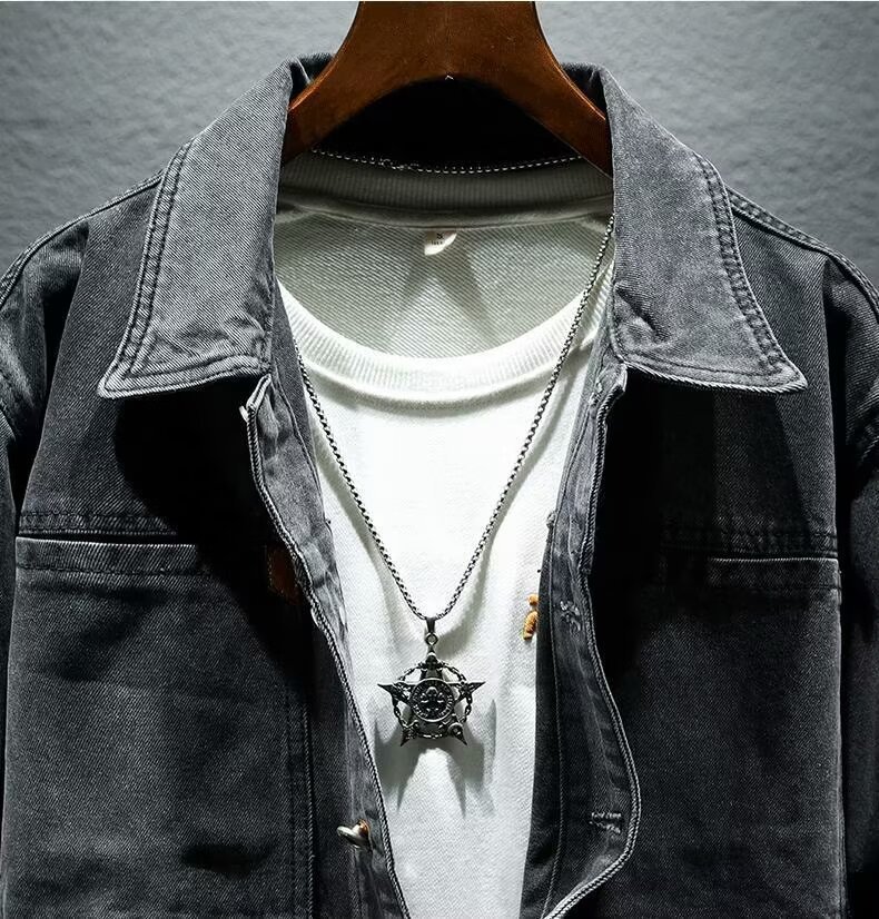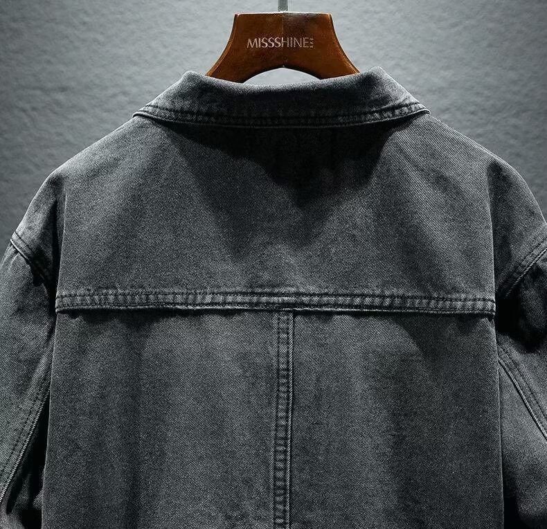 옷깃 단색 고급 블랙 그레이 봄과 가을 데님 자켓 남성용 트렌디 브랜드 10 대 커플용 싱글 브레스트 긴팔 스타일스토어 가기