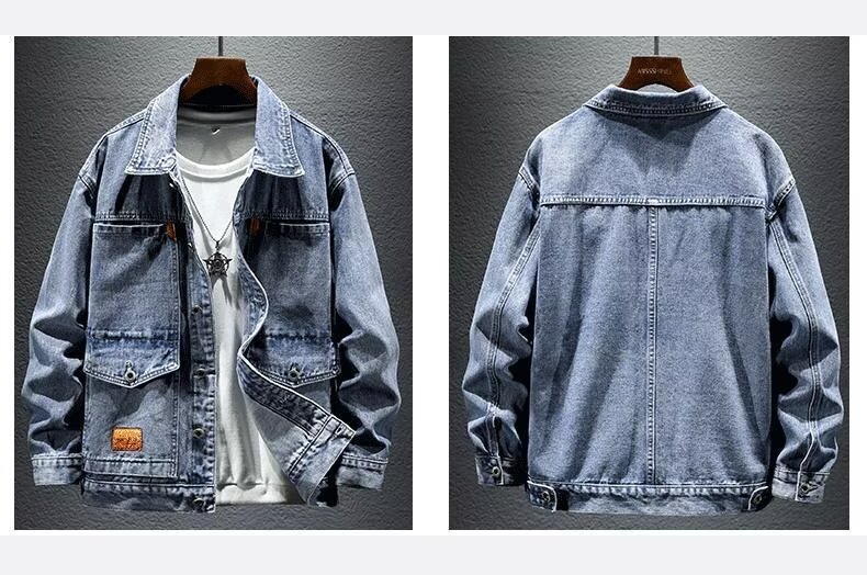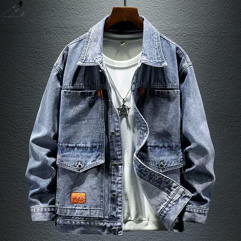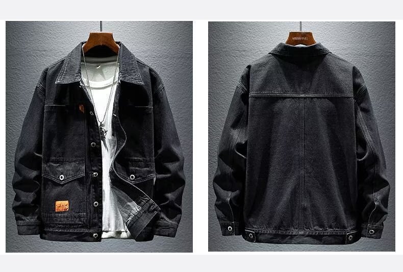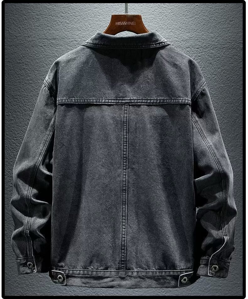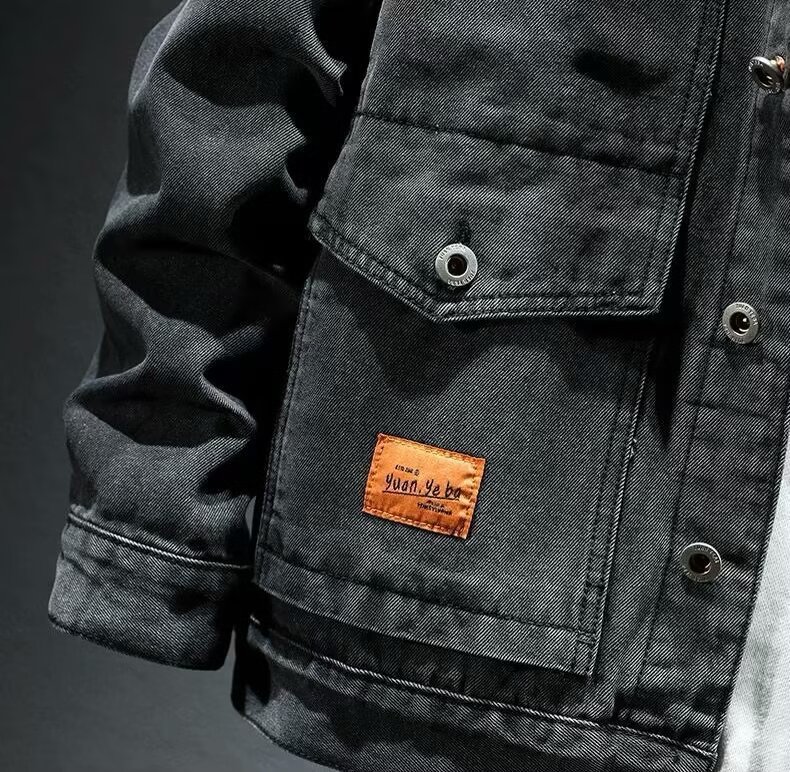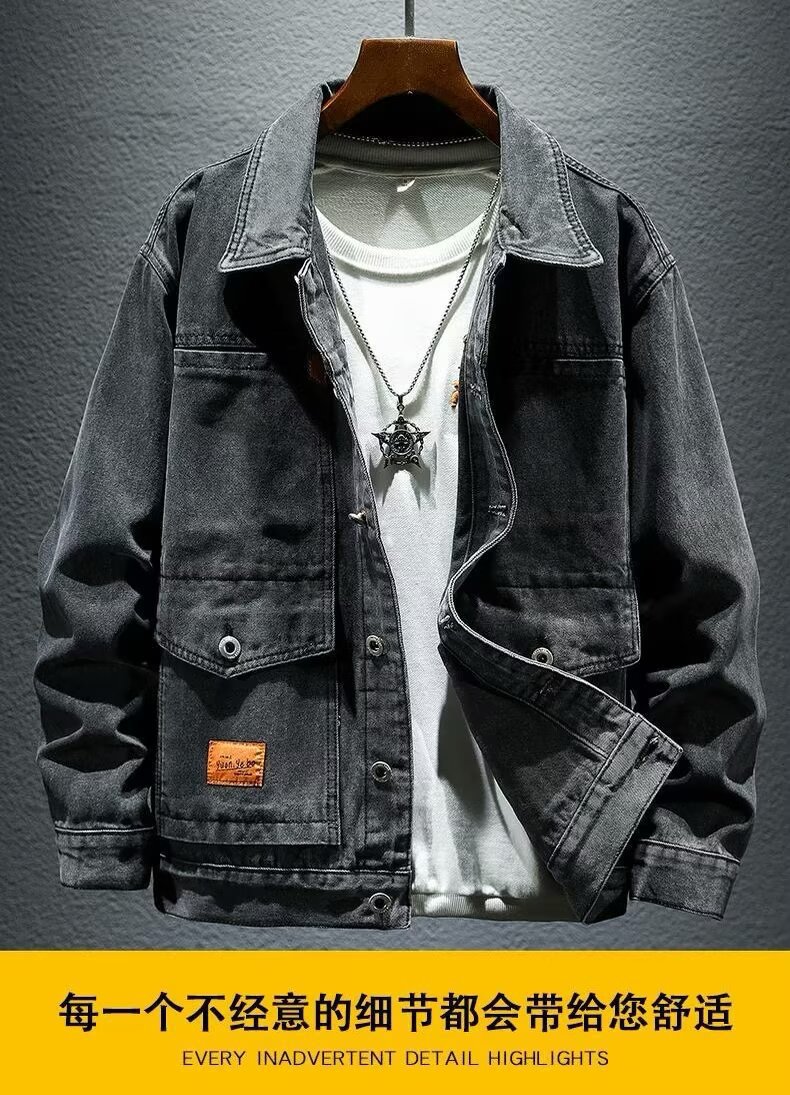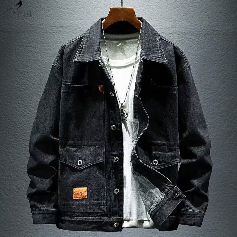 옷깃 단색 고급 블랙 그레이 봄과 가을 데님 자켓 남성용 트렌디 브랜드 10 대 커플용 싱글 브레스트 긴팔 스타일