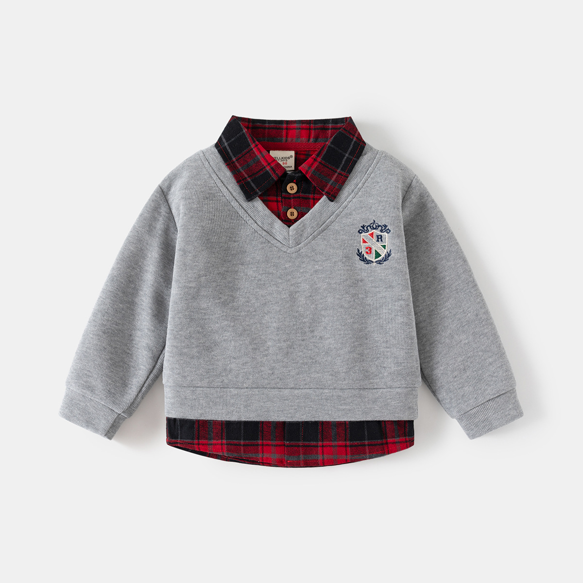 봄 소년 가짜 투피스 운동복 봄 2025 새로운 한국 스타일 어린이 긴 소매 재킷 트렌디스토어 가기