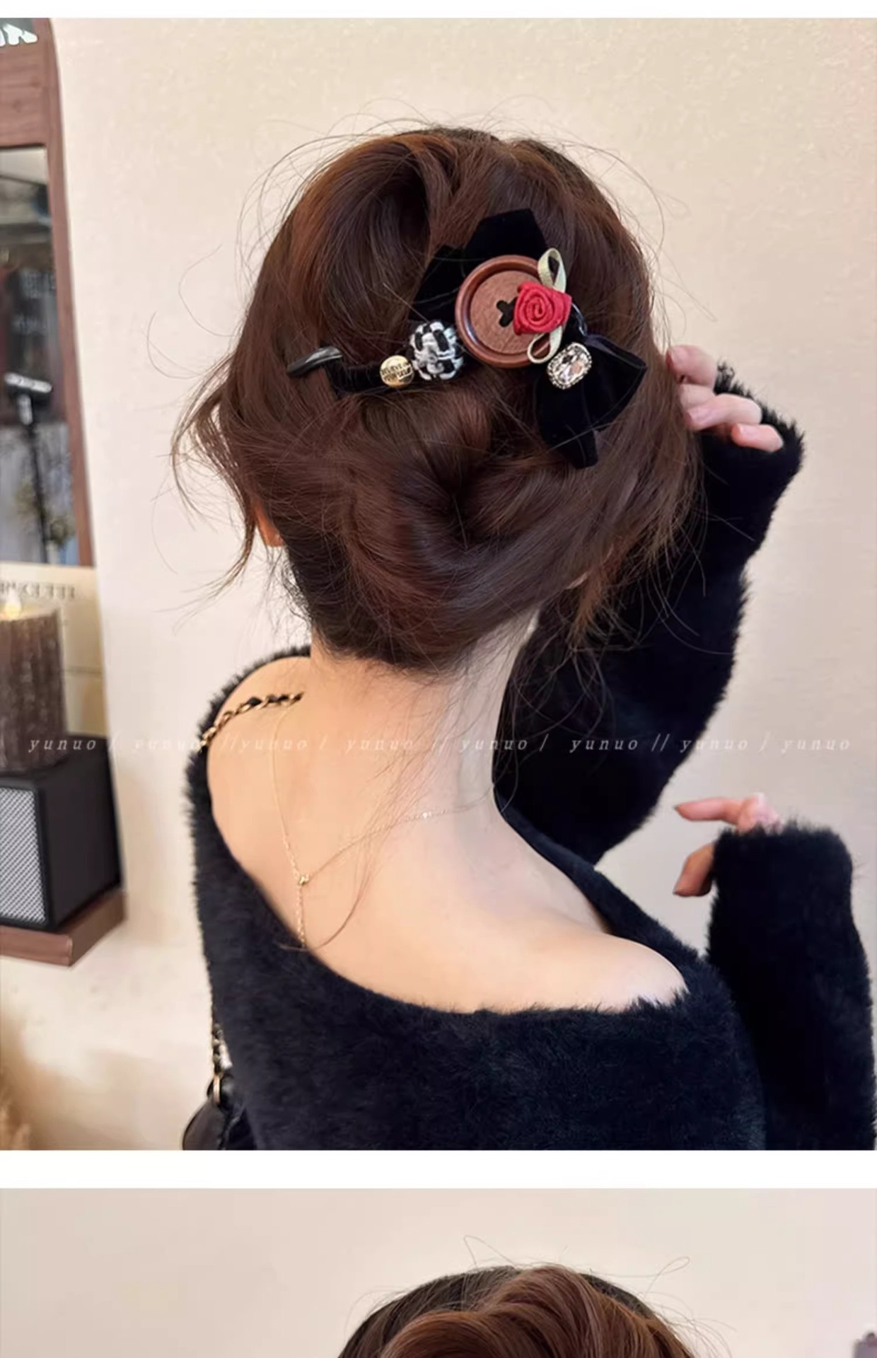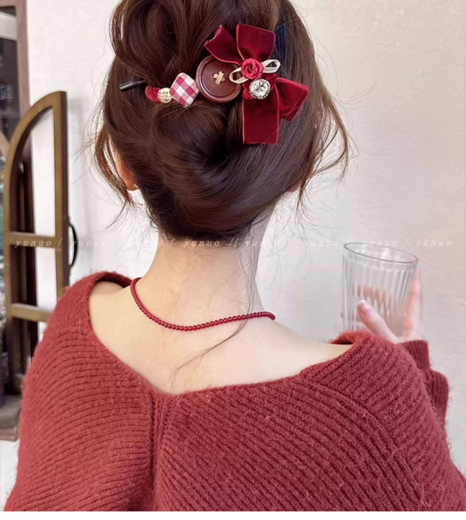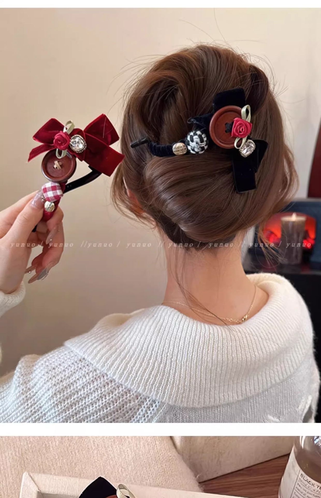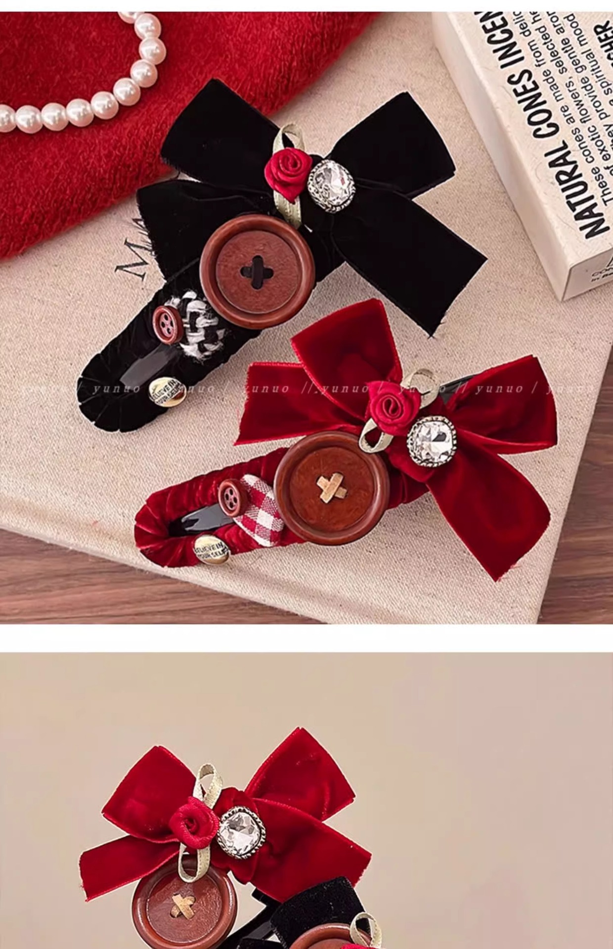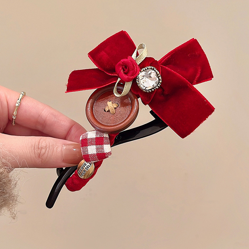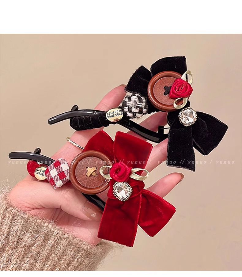 달콤한 벨벳 활 머리핀 여성의 머리 머리 머리 하나 단어 트위스트 클립 2024 새해 헤드웨어 그랩 클립