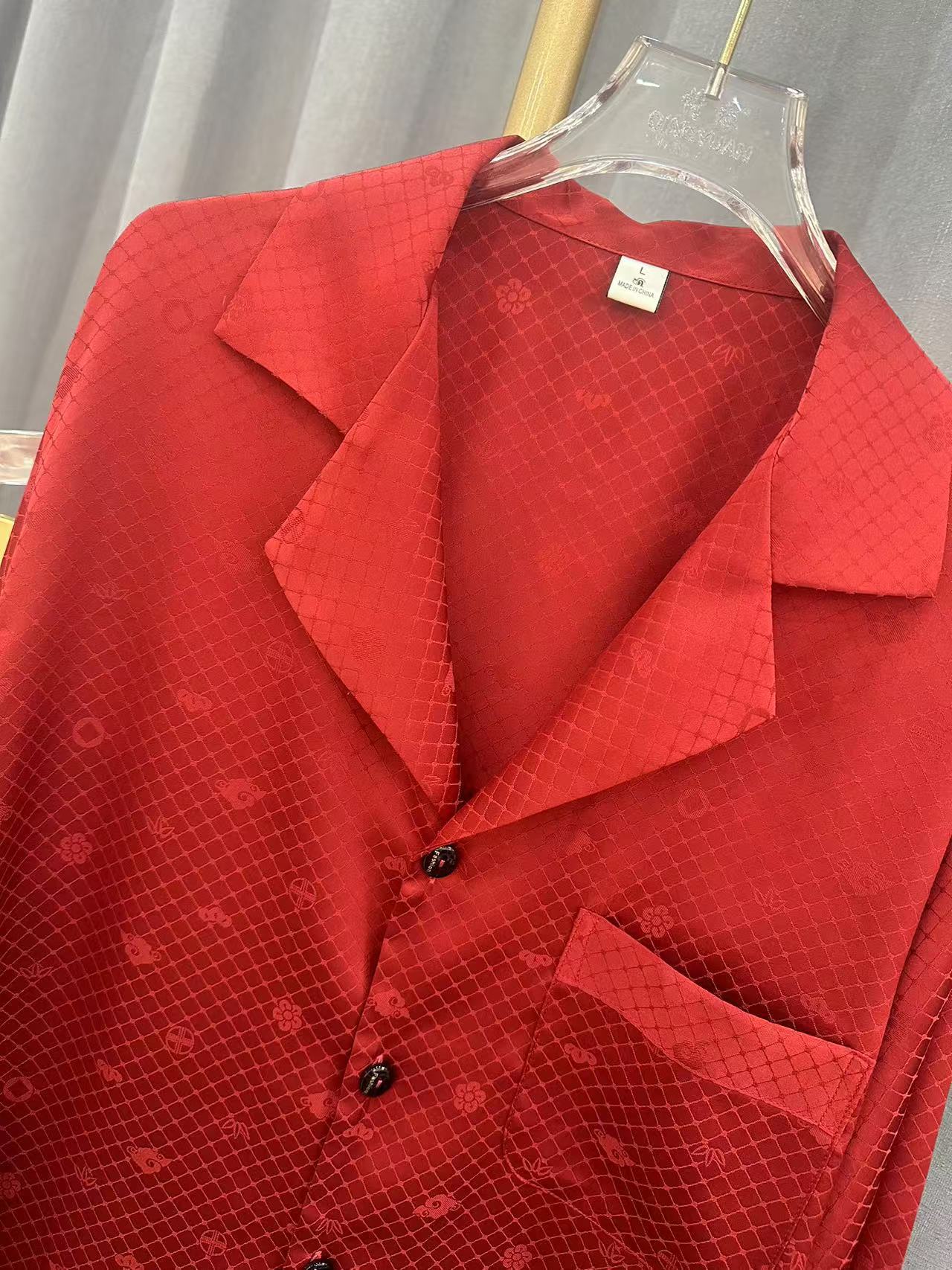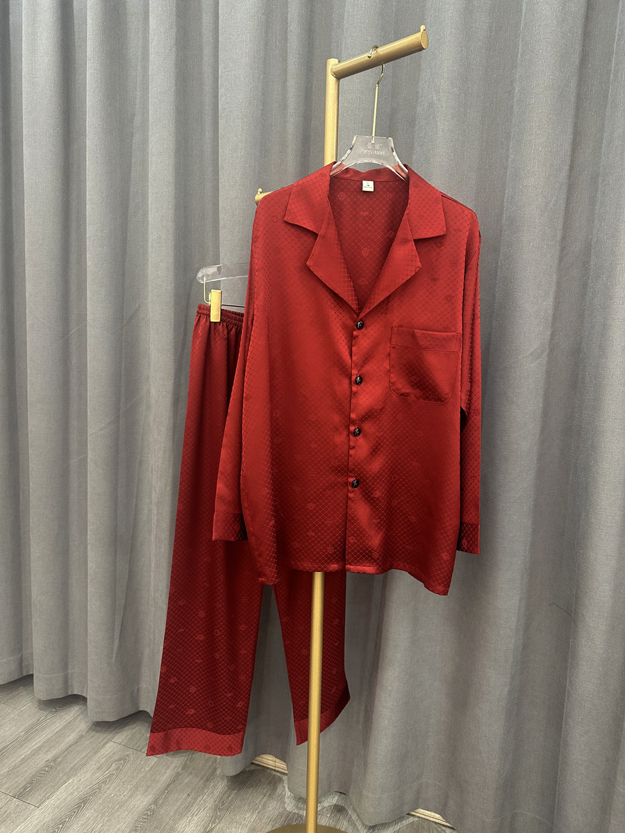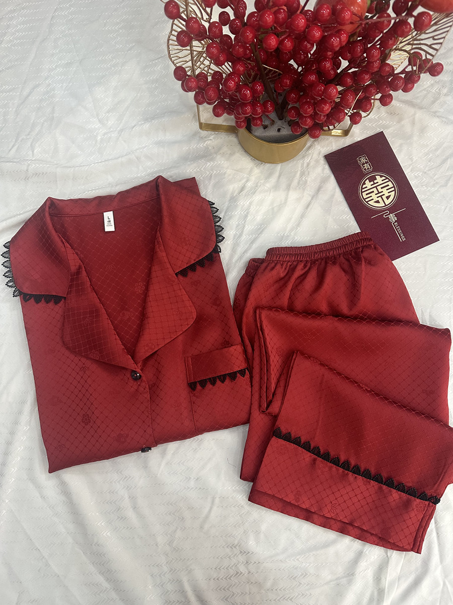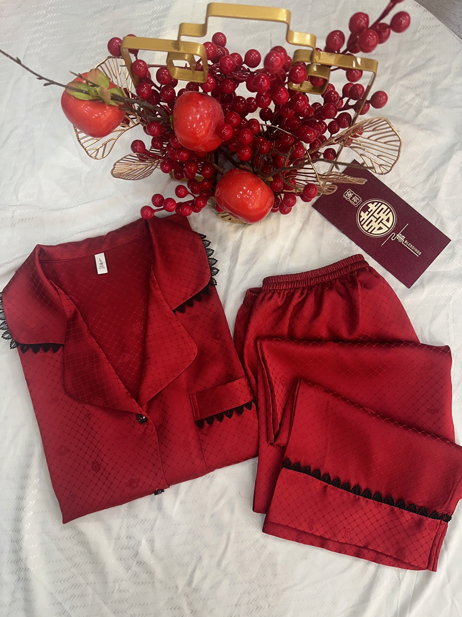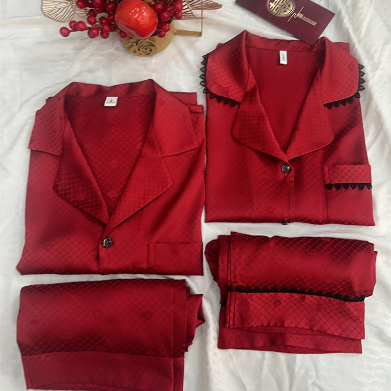 레드 커플의 잠옷 봄과 가을 여성의 아이스 실크 하이 엔드 홈 옷 새해 결혼식 남자 긴팔 세트스토어 가기