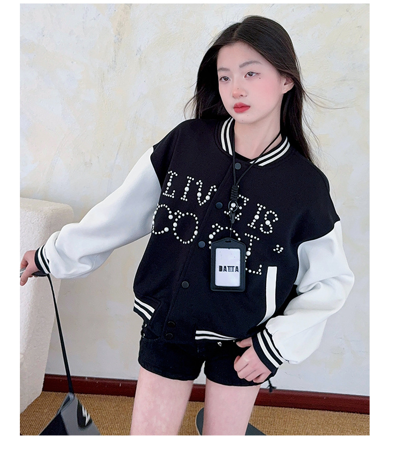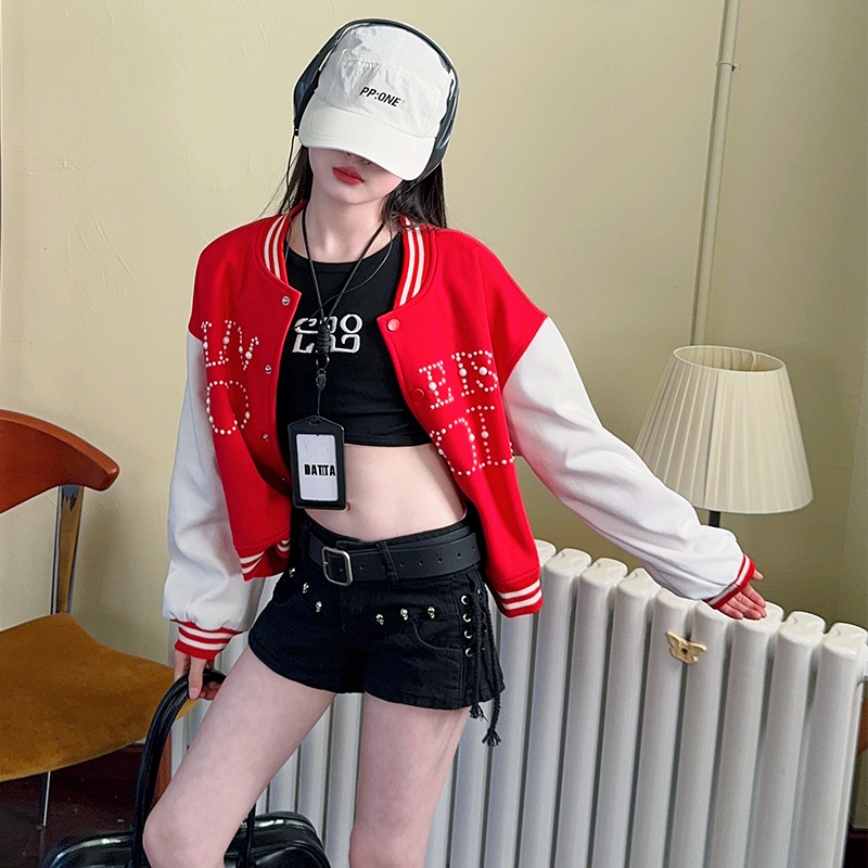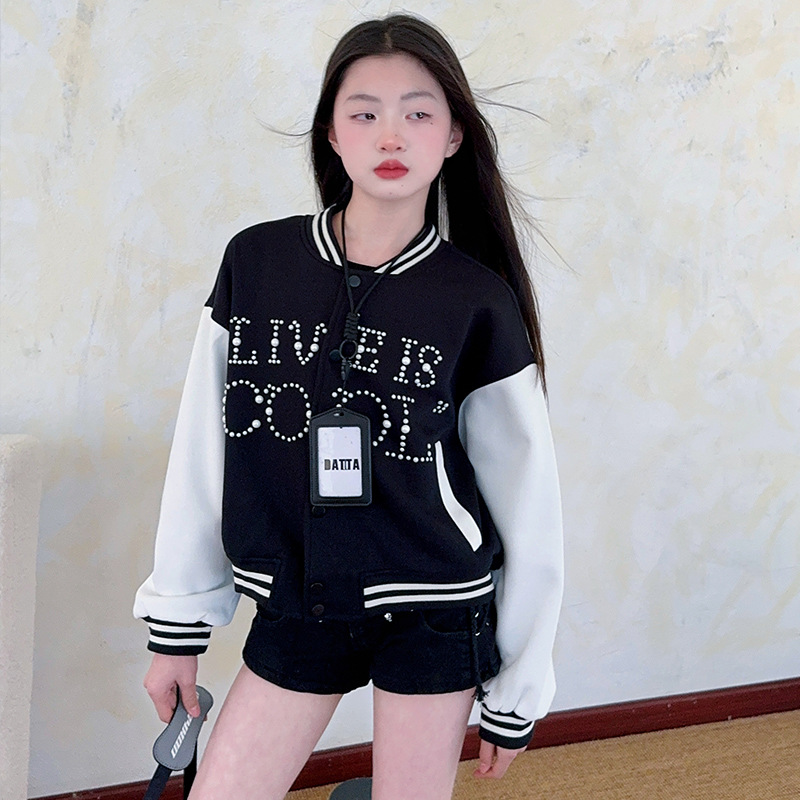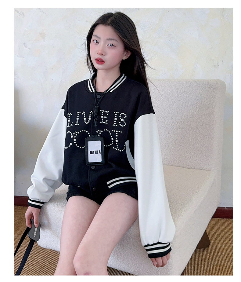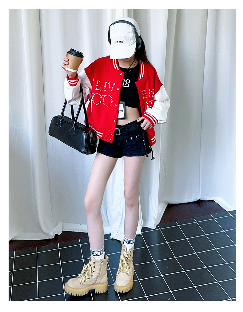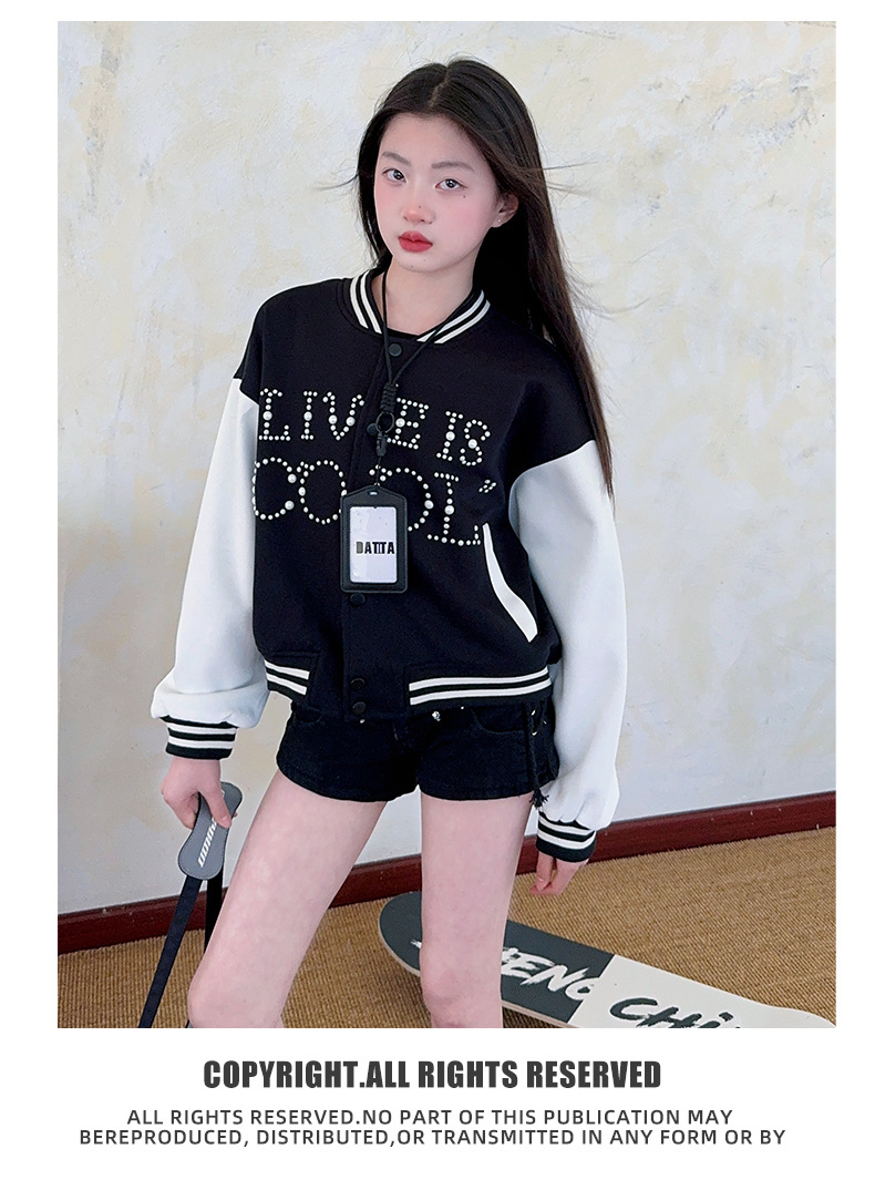 2025 미국 레트로 야구 세트 재킷 소녀의 봄 스티칭 대조 재킷 느슨한 대학 스타일 최고 유행스토어 가기