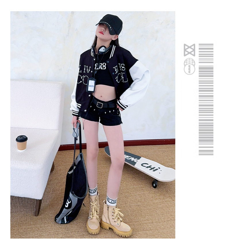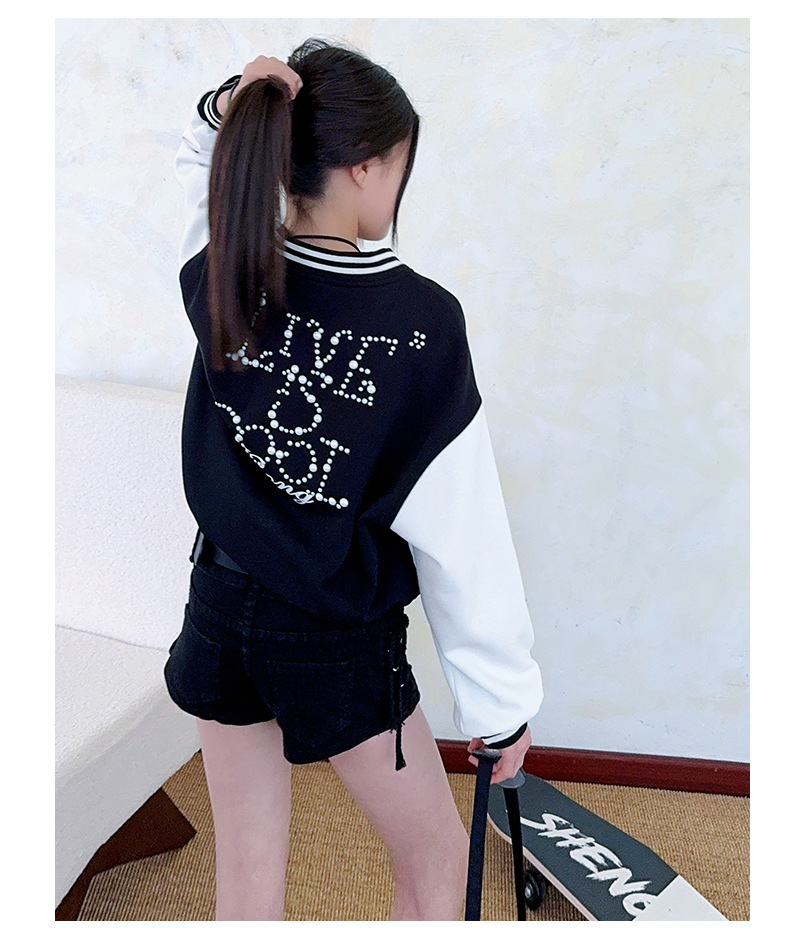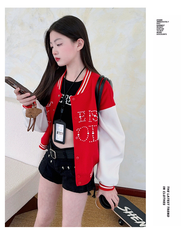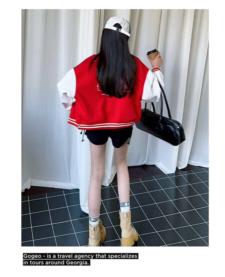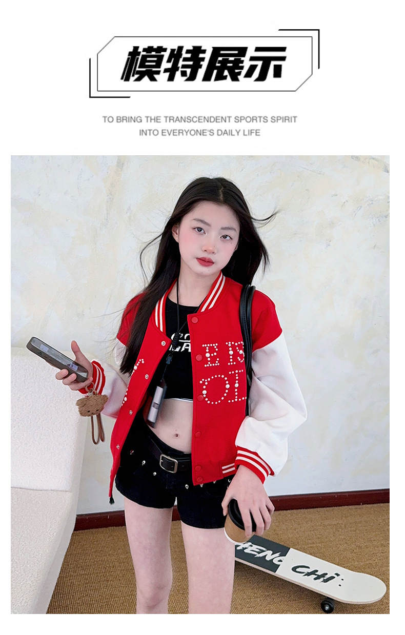 2025 미국 레트로 야구 세트 재킷 소녀의 봄 스티칭 대조 재킷 느슨한 대학 스타일 최고 유행스토어 가기