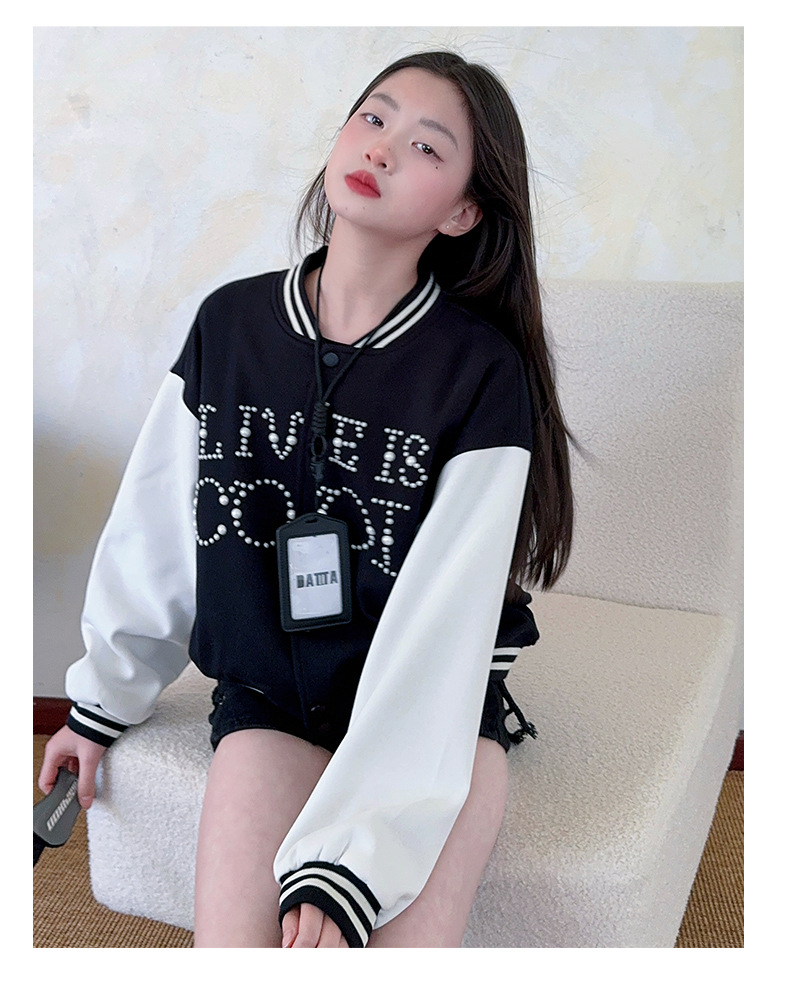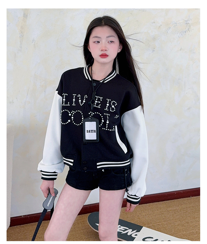 2025 미국 레트로 야구 세트 재킷 소녀의 봄 스티칭 대조 재킷 느슨한 대학 스타일 최고 유행