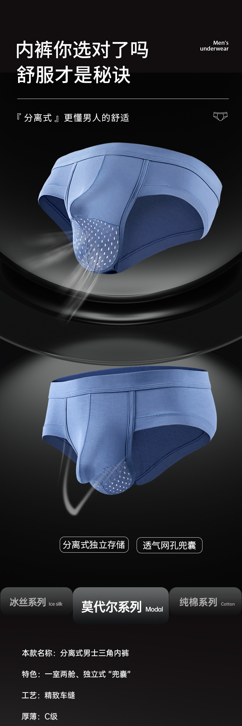 코와 음낭을 지지하는 모달 남성용 팬티, 청소년 발달기 남성 속옷, 조임 없음, 통기성 및 항균 기능