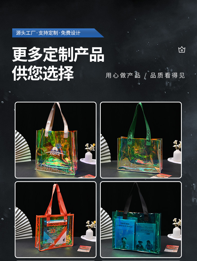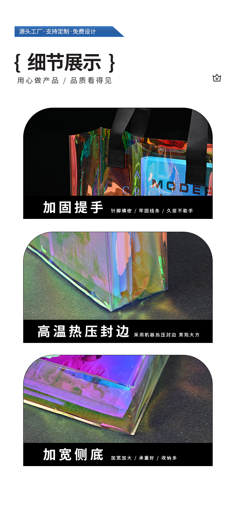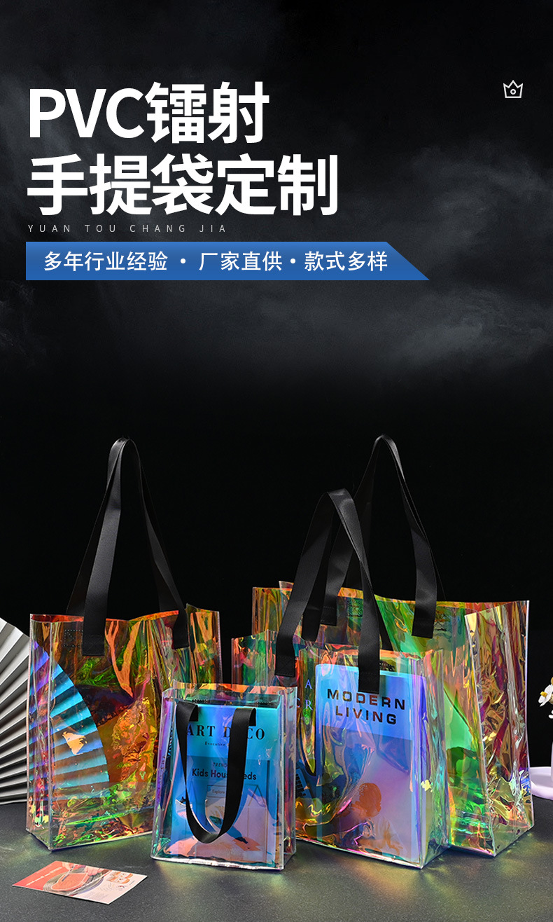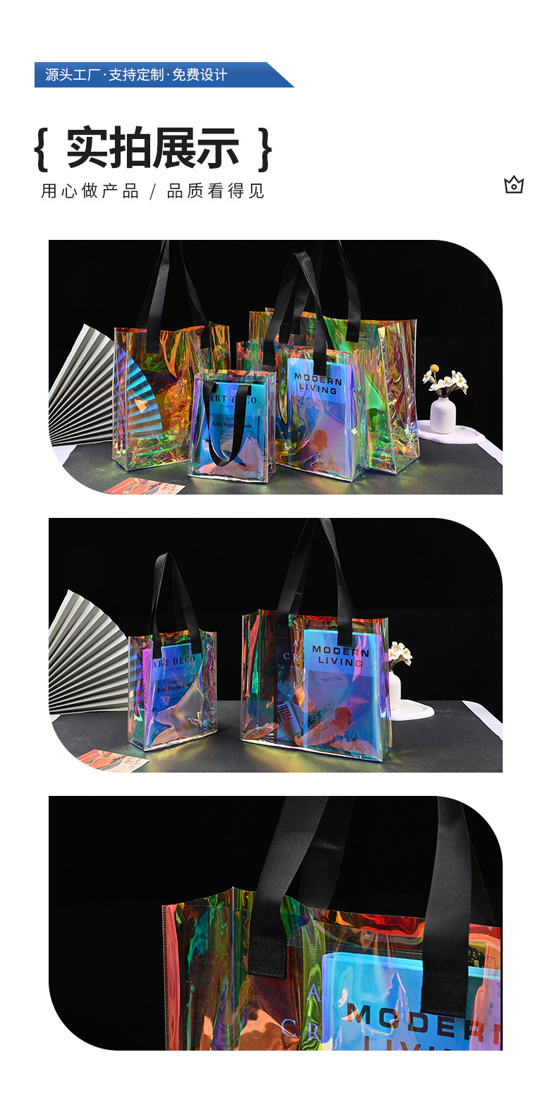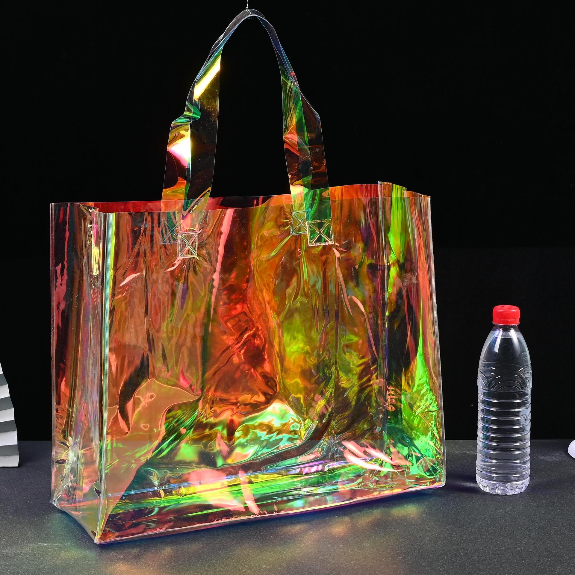 PVC 휴대용 레이저 가방 맞춤형 프리미엄 센스 플라스틱 투명 매직 선물 가방 여행 쇼핑 젤리 가방스토어 가기