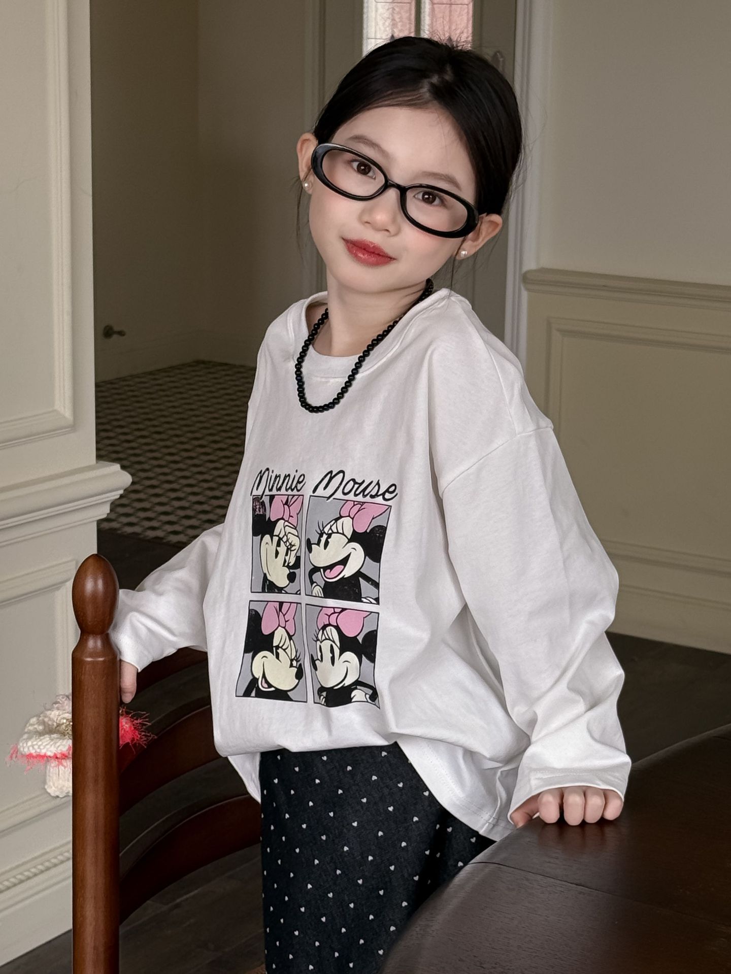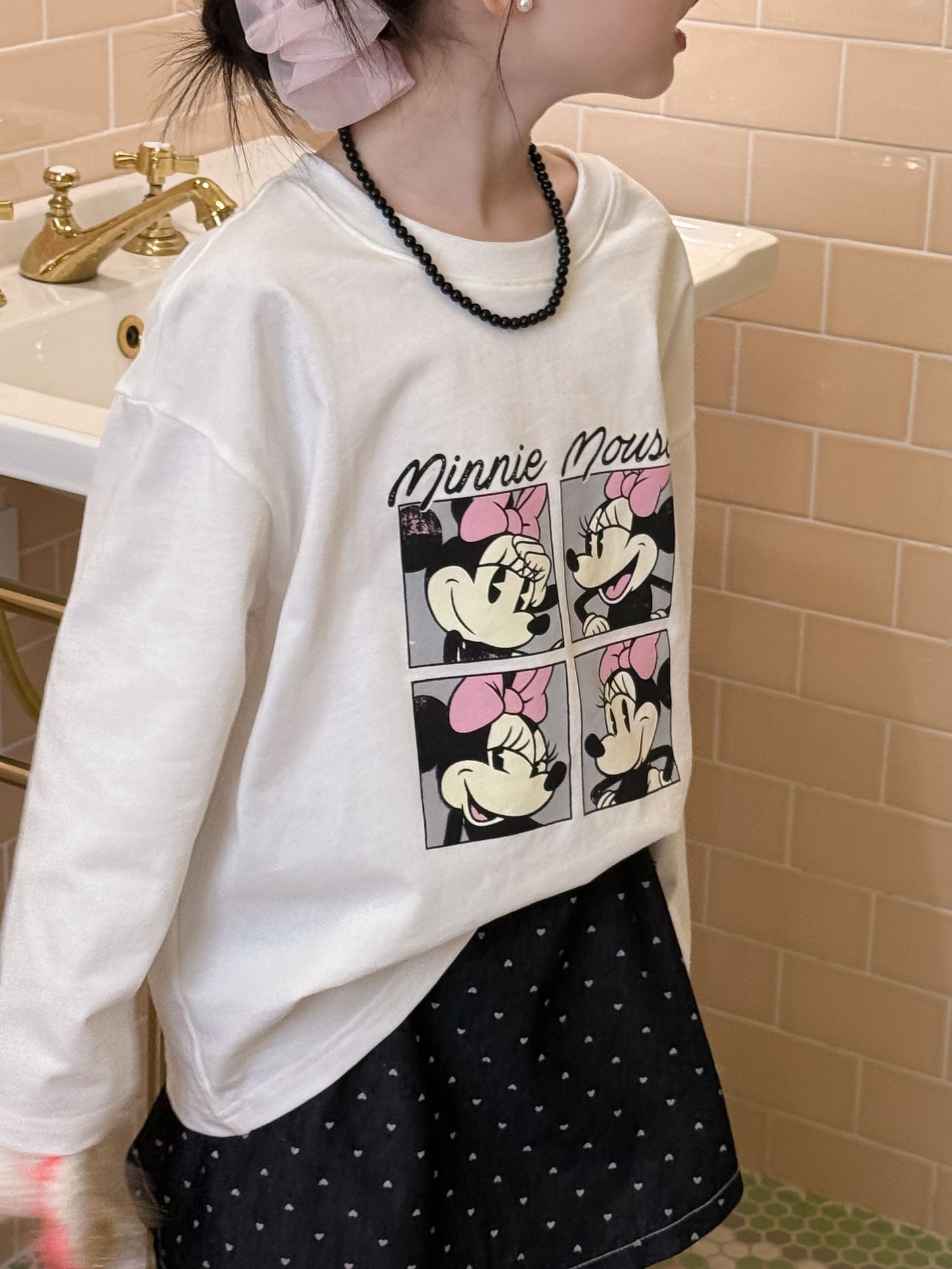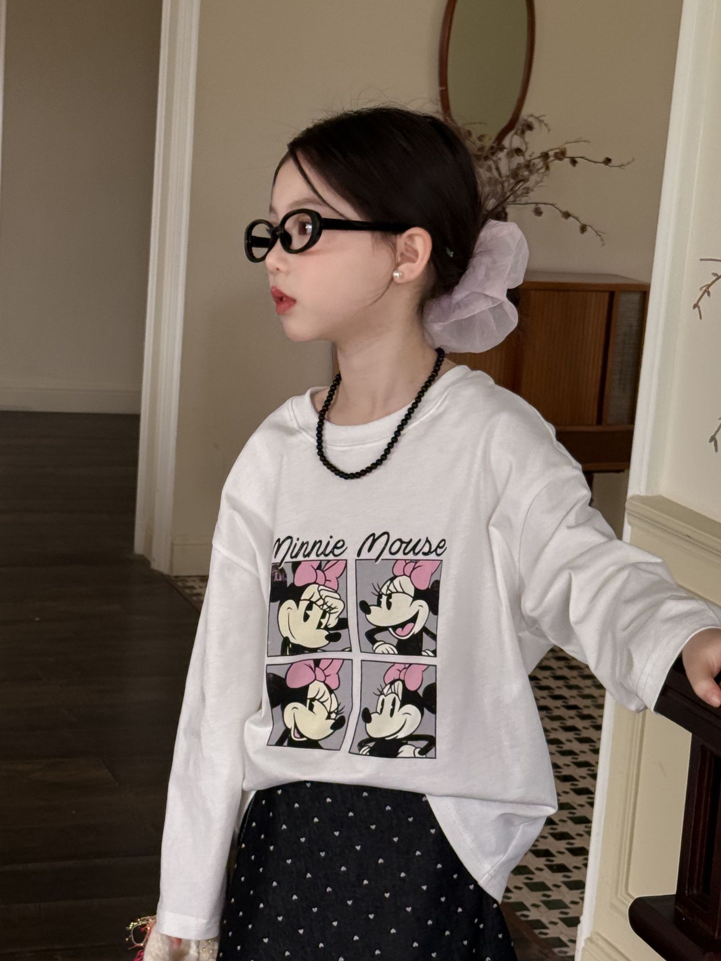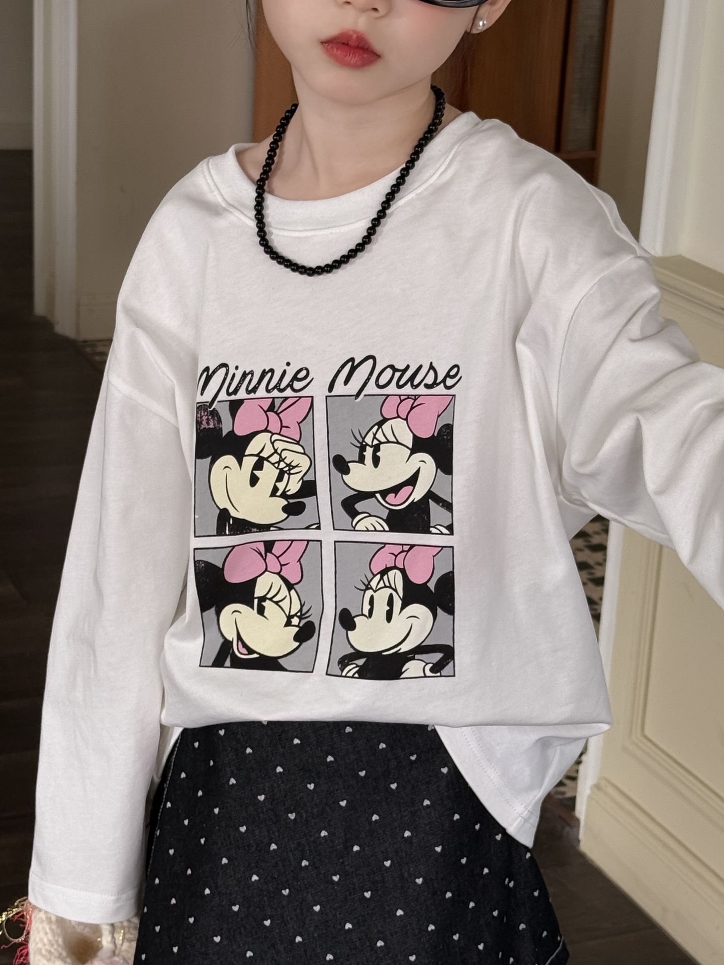 꽃과 탐구 키즈 소녀 2025 새로운 어린이 만화 미키베이스 셔츠 한국 스타일 서양식 긴 T 트렌디 어린이스토어 가기