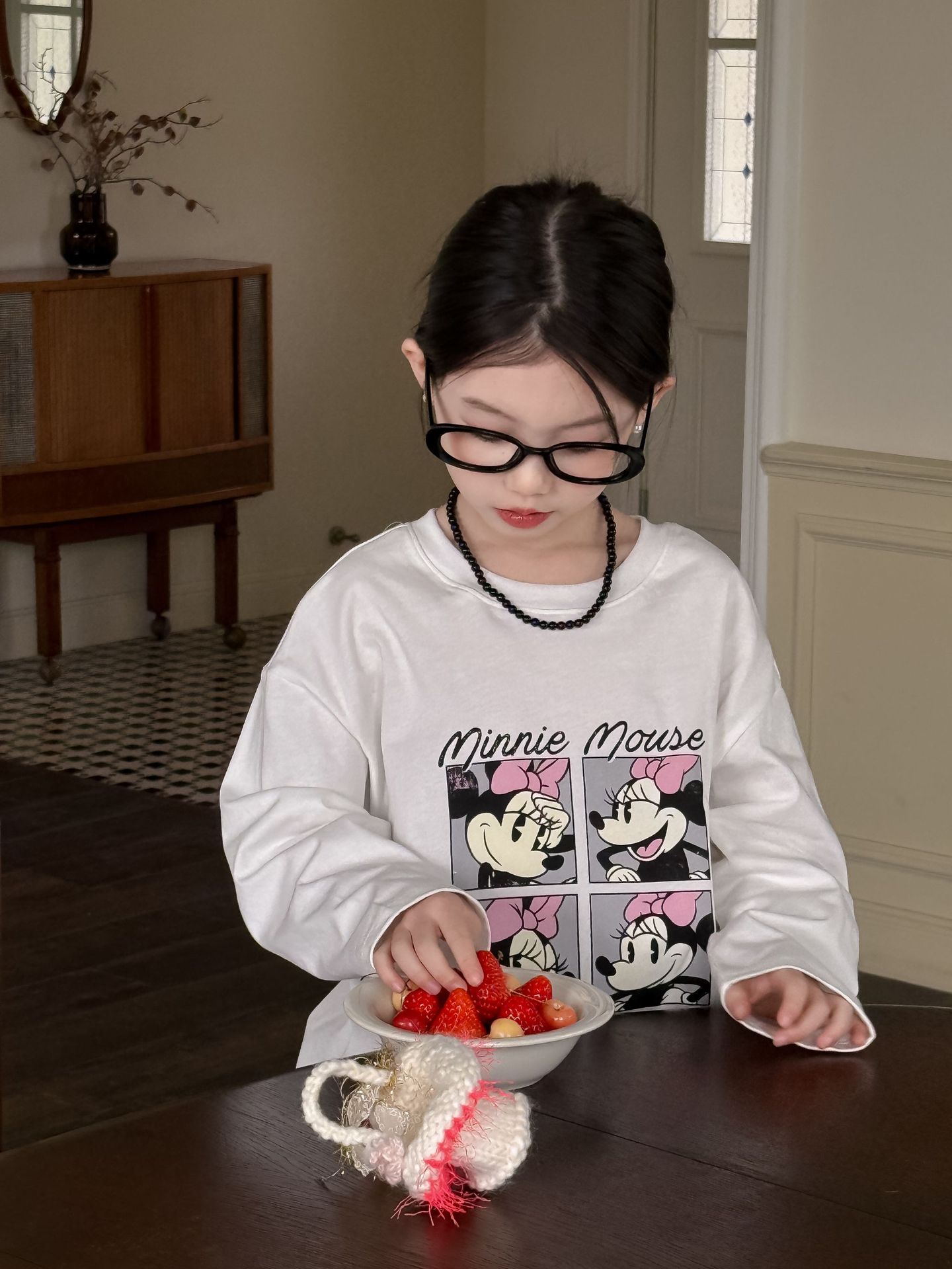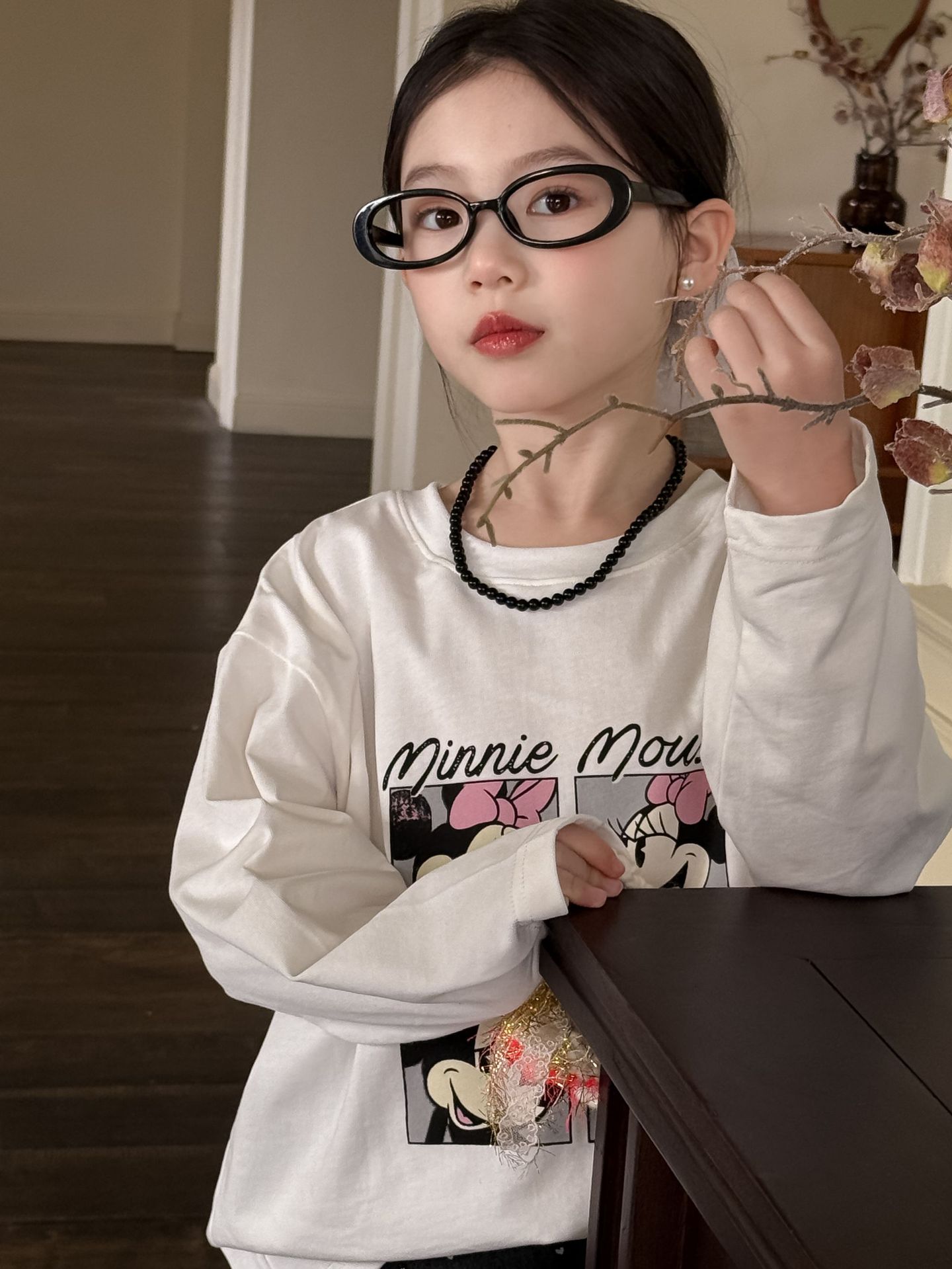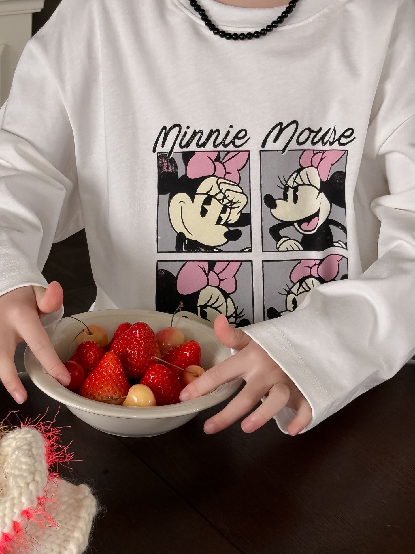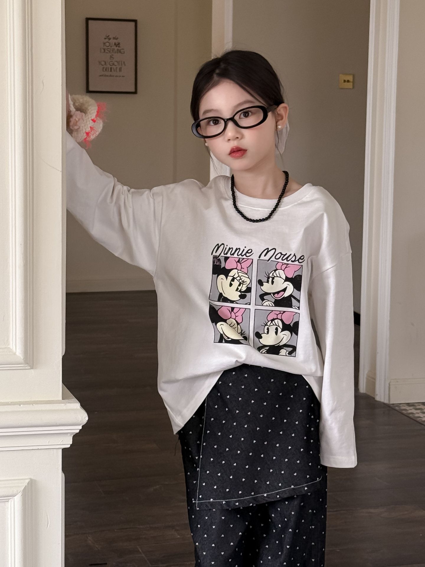 꽃과 탐구 키즈 소녀 2025 새로운 어린이 만화 미키베이스 셔츠 한국 스타일 서양식 긴 T 트렌디 어린이스토어 가기