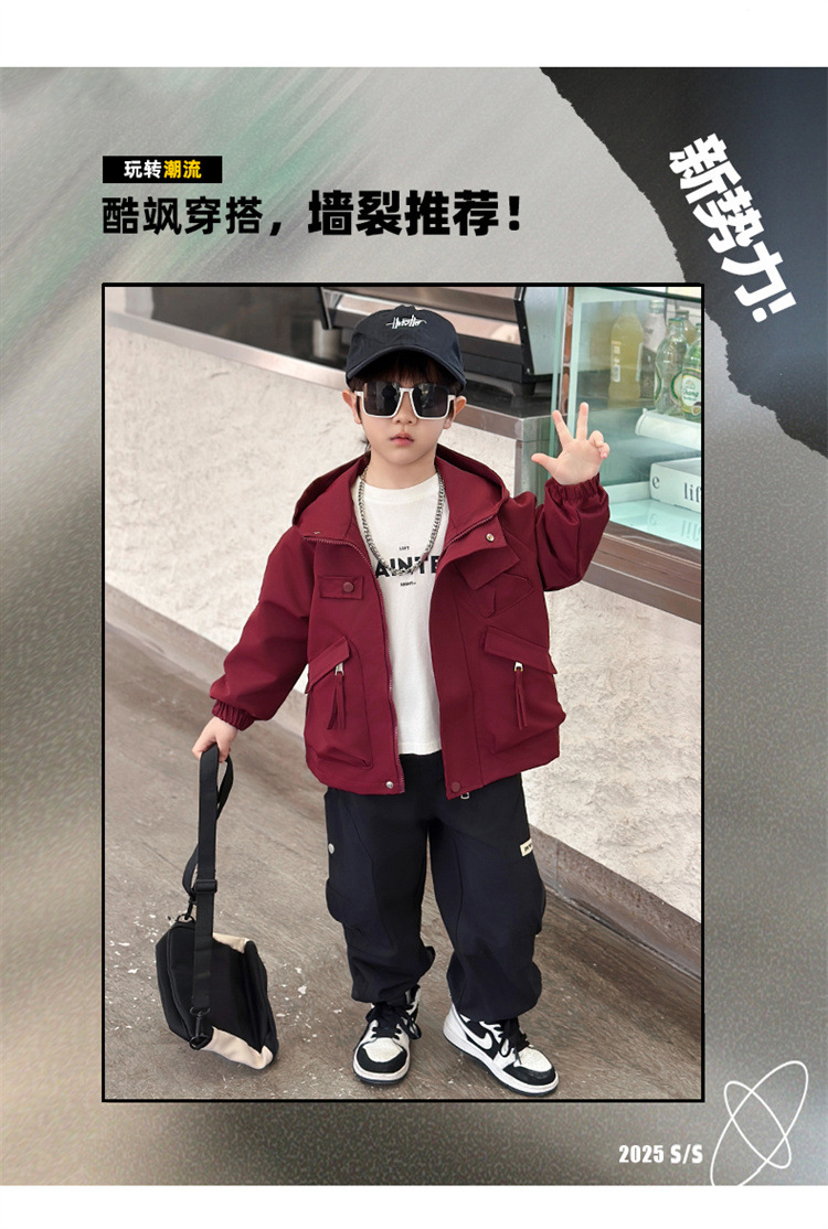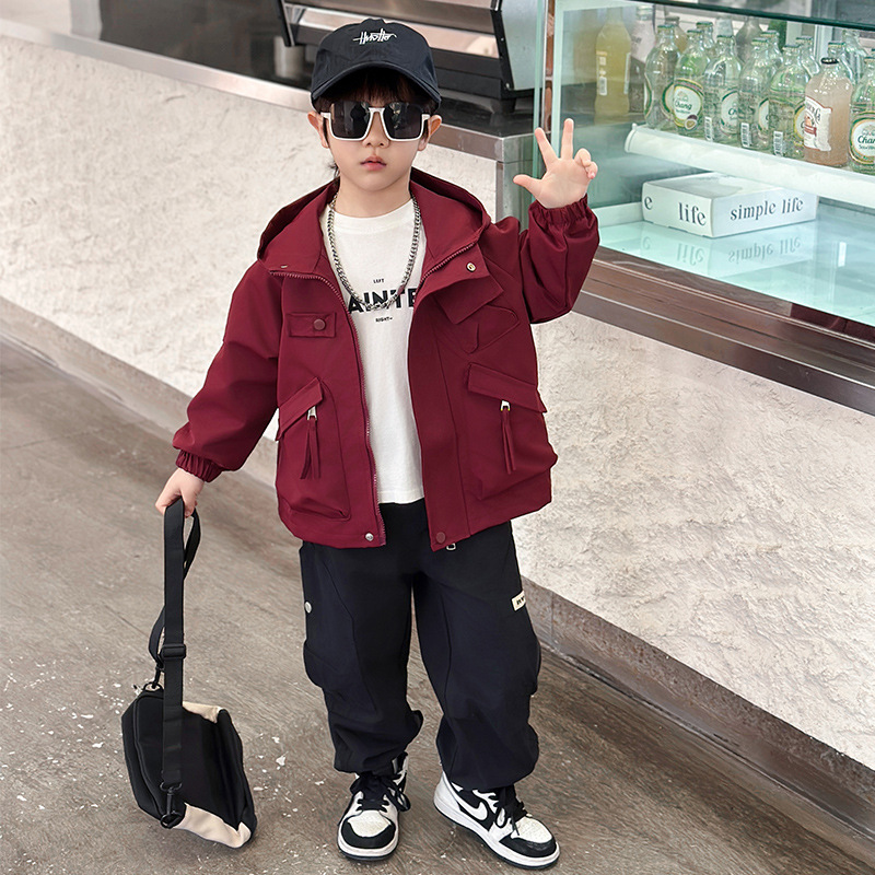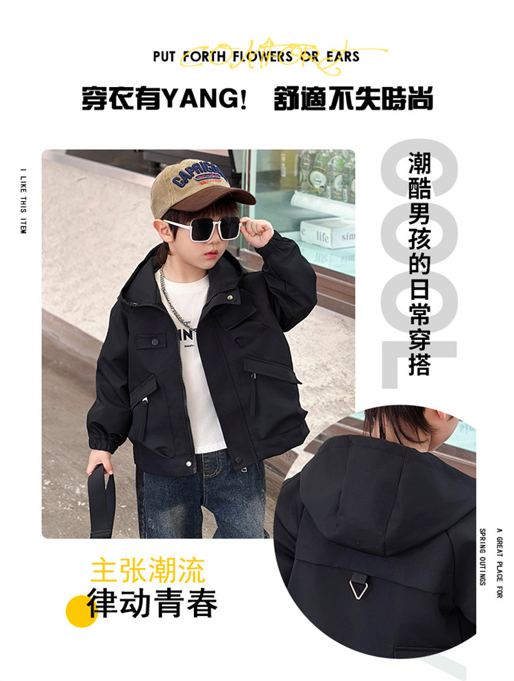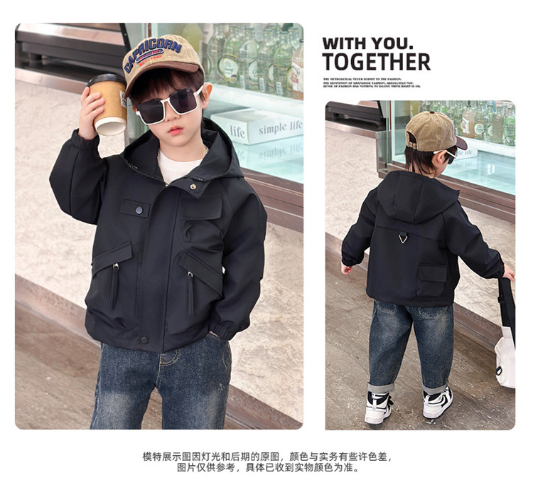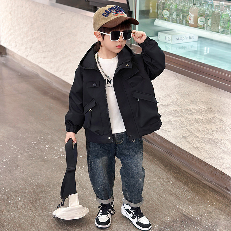 소년의 단색 작업 코트 2025 봄 새로운 어린이 서양식 남성 아기의 후드 자켓 트렌디 코트스토어 가기
