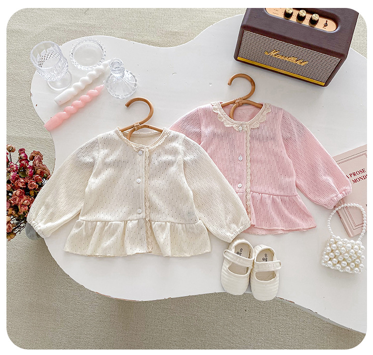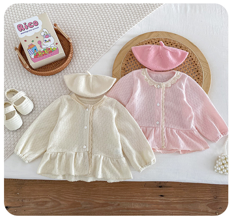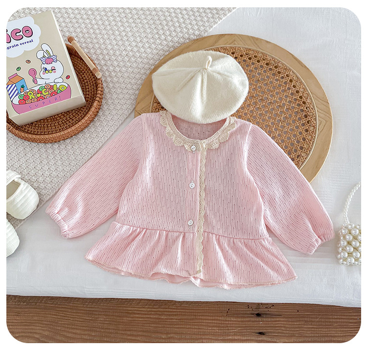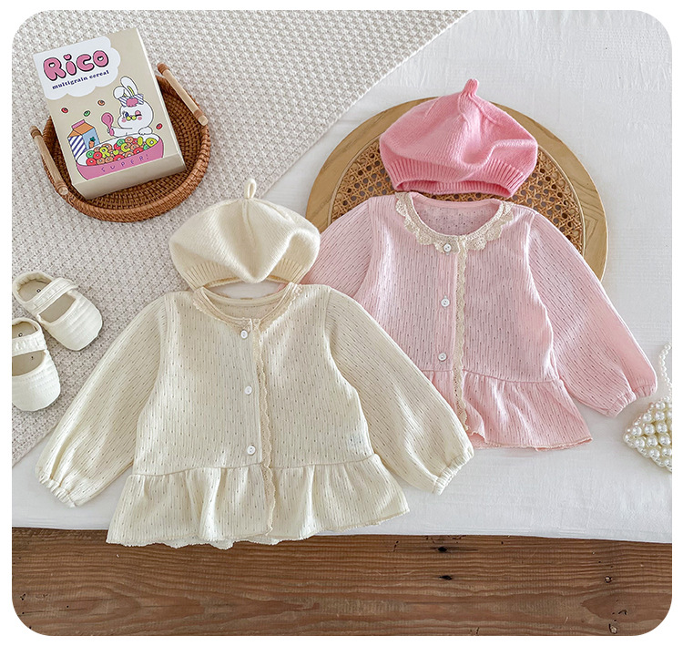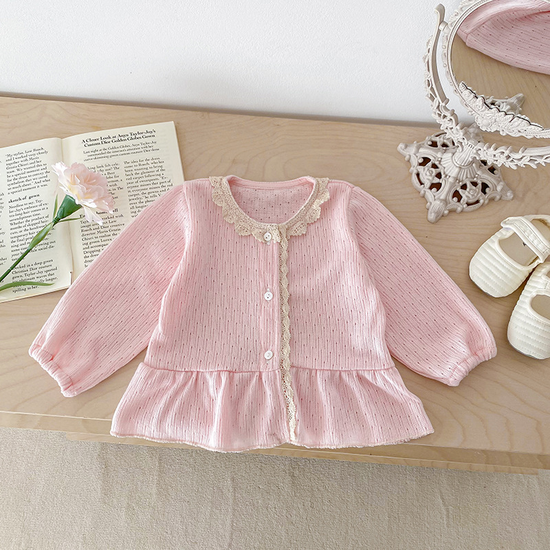 아기 소녀 니트 재킷 2025 봄과 가을 새로운 한국 스타일 유아 달콤하고 귀여운 레이스 카디건 공주 탑스토어 가기