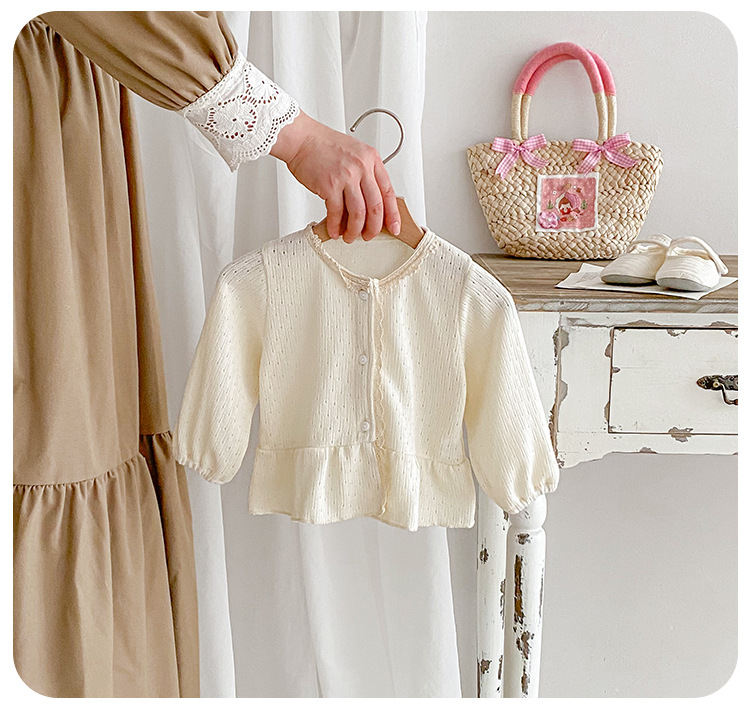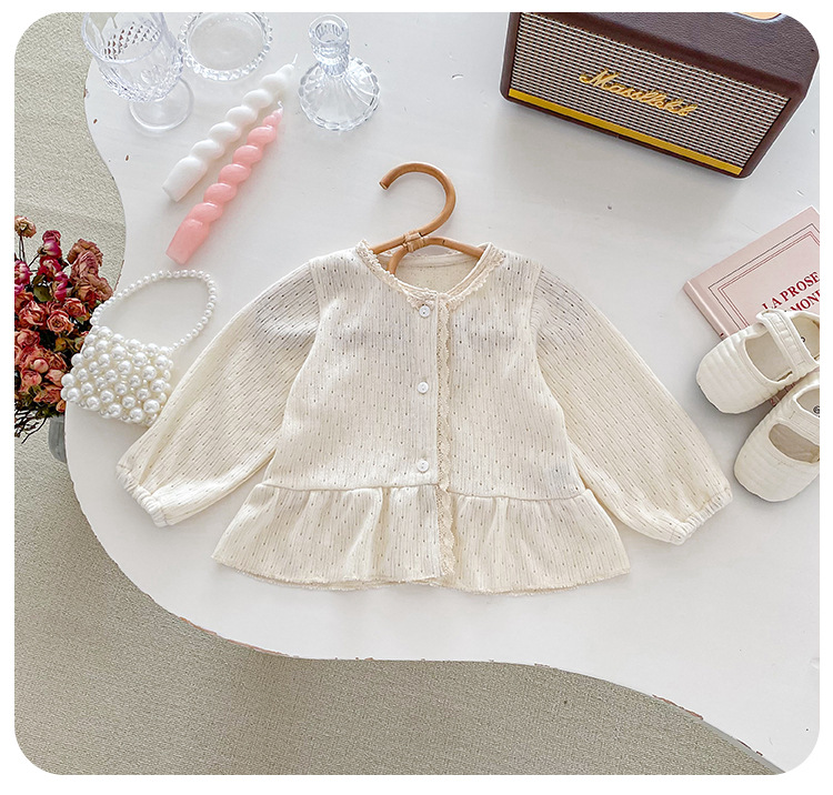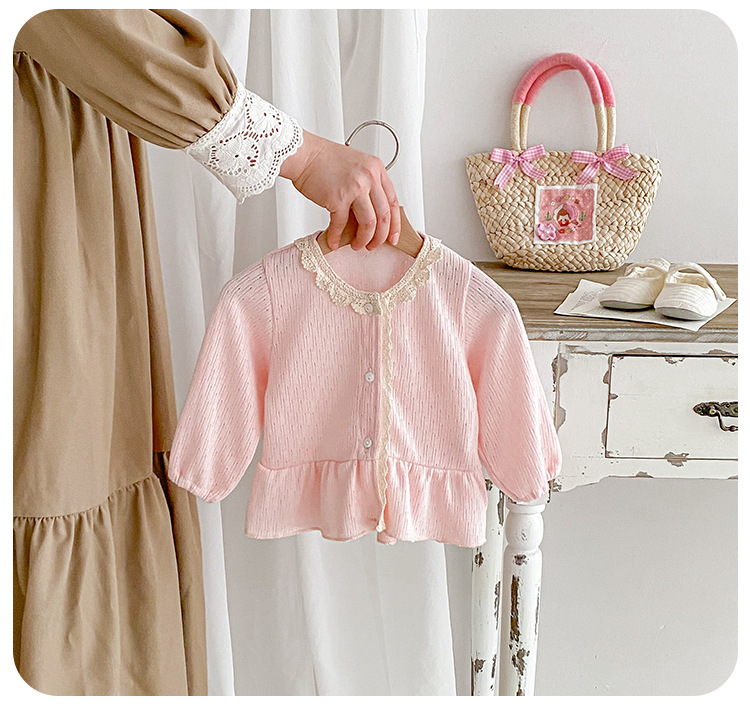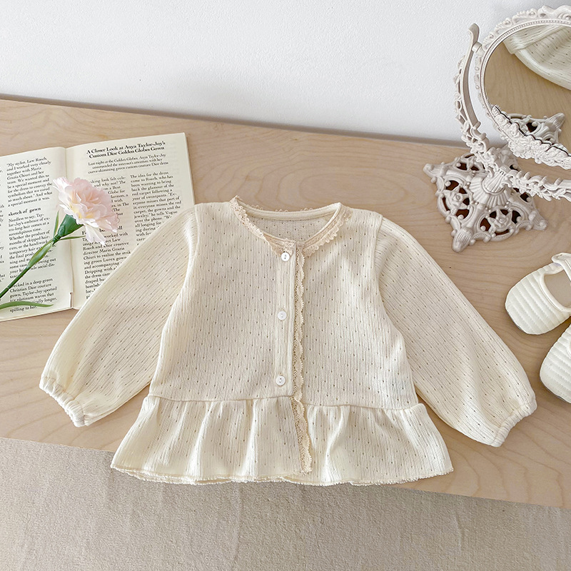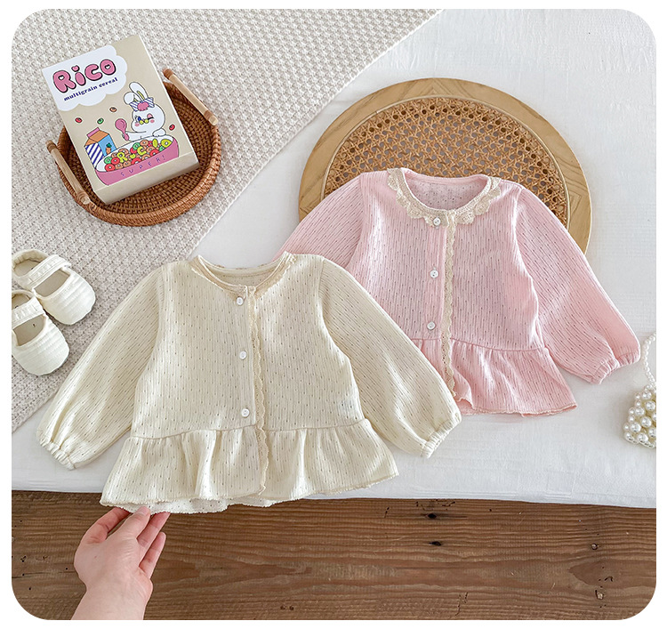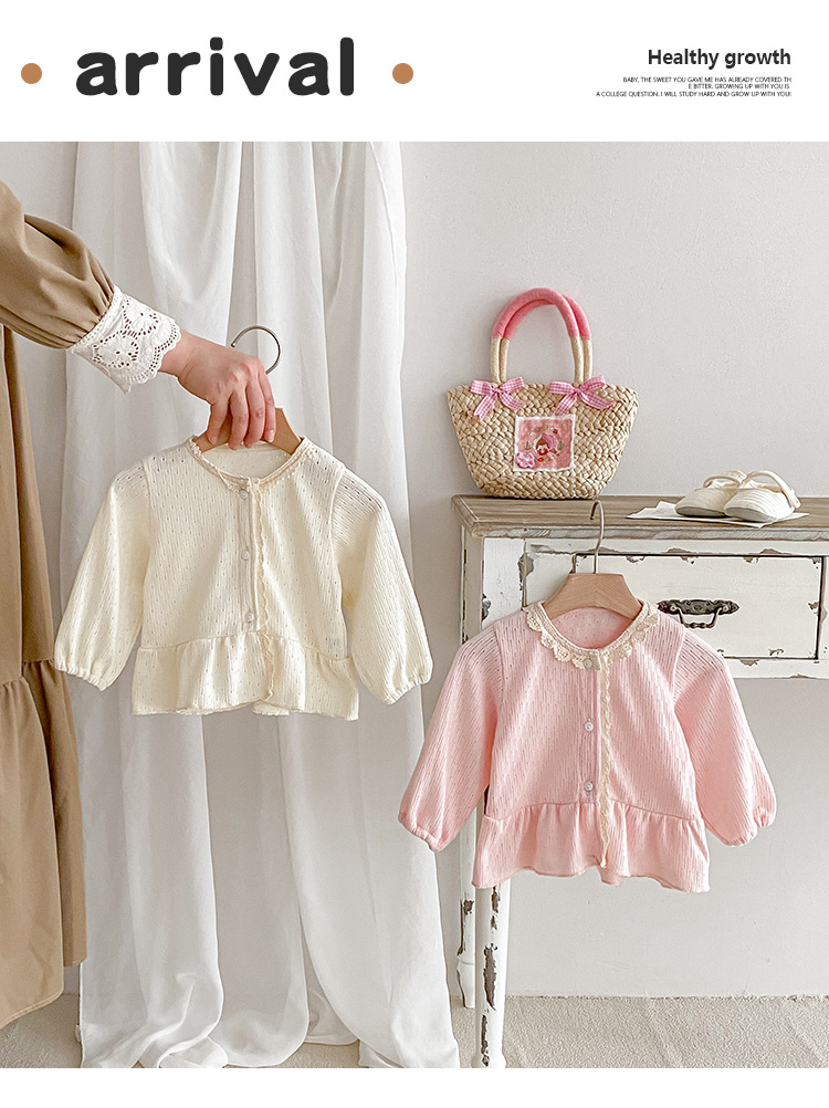아기 소녀 니트 재킷 2025 봄과 가을 새로운 한국 스타일 유아 달콤하고 귀여운 레이스 카디건 공주 탑스토어 가기