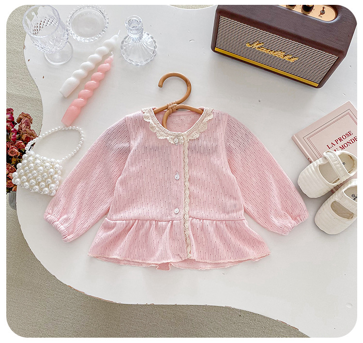 아기 소녀 니트 재킷 2025 봄과 가을 새로운 한국 스타일 유아 달콤하고 귀여운 레이스 카디건 공주 탑