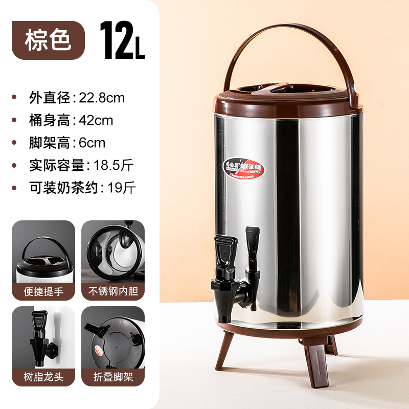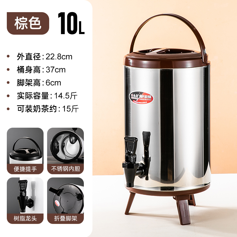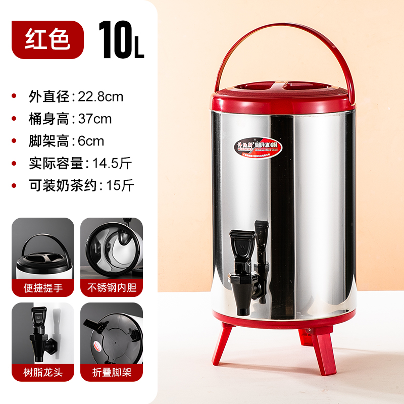 304 스테인레스 스틸 절연 버킷 우유 차 양동이 상업용 대형 용량 10 리터 더블 레이어 냉간 우유 차 가게 계단