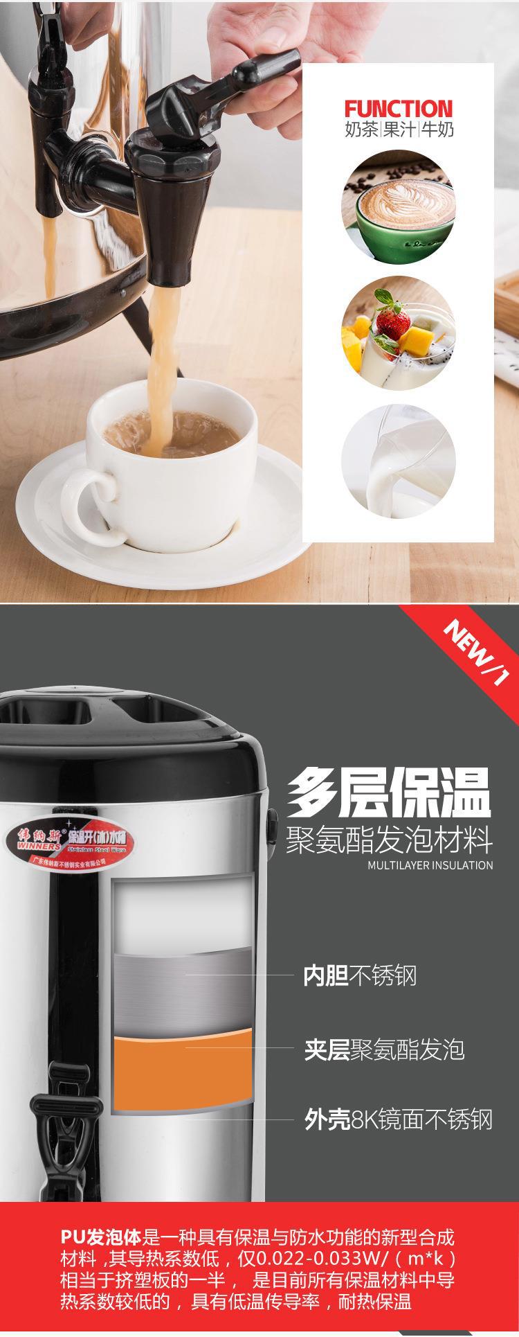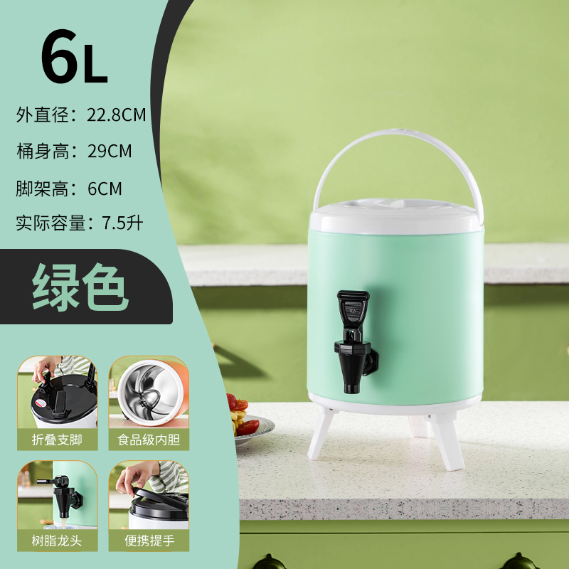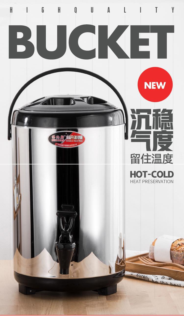 304 스테인레스 스틸 절연 버킷 우유 차 양동이 상업용 대형 용량 10 리터 더블 레이어 냉간 우유 차 가게 계단스토어 가기