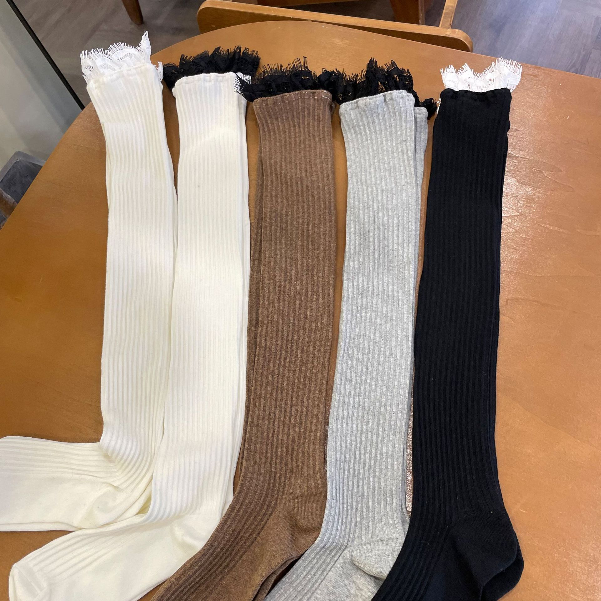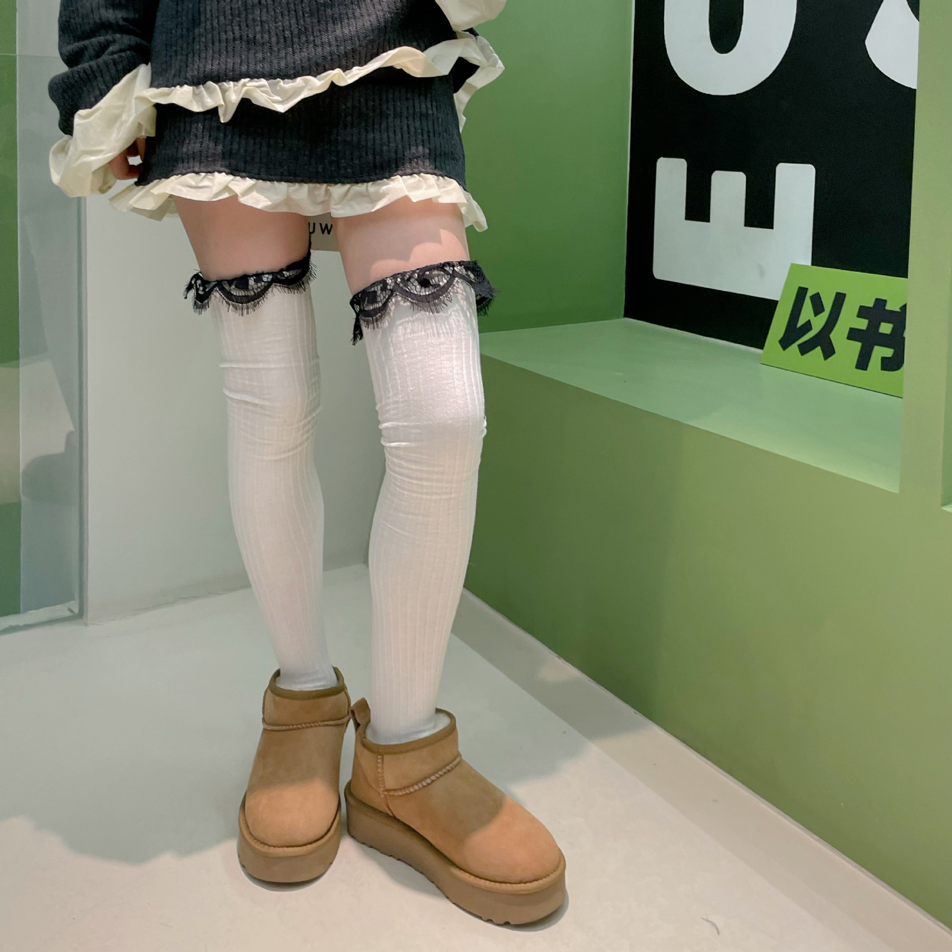 한국 동대문 달콤한 레이스 속눈썹 레이스 높은 스타킹 슬리밍 스타킹 Jk 무릎 위 스타킹 봄과 가을