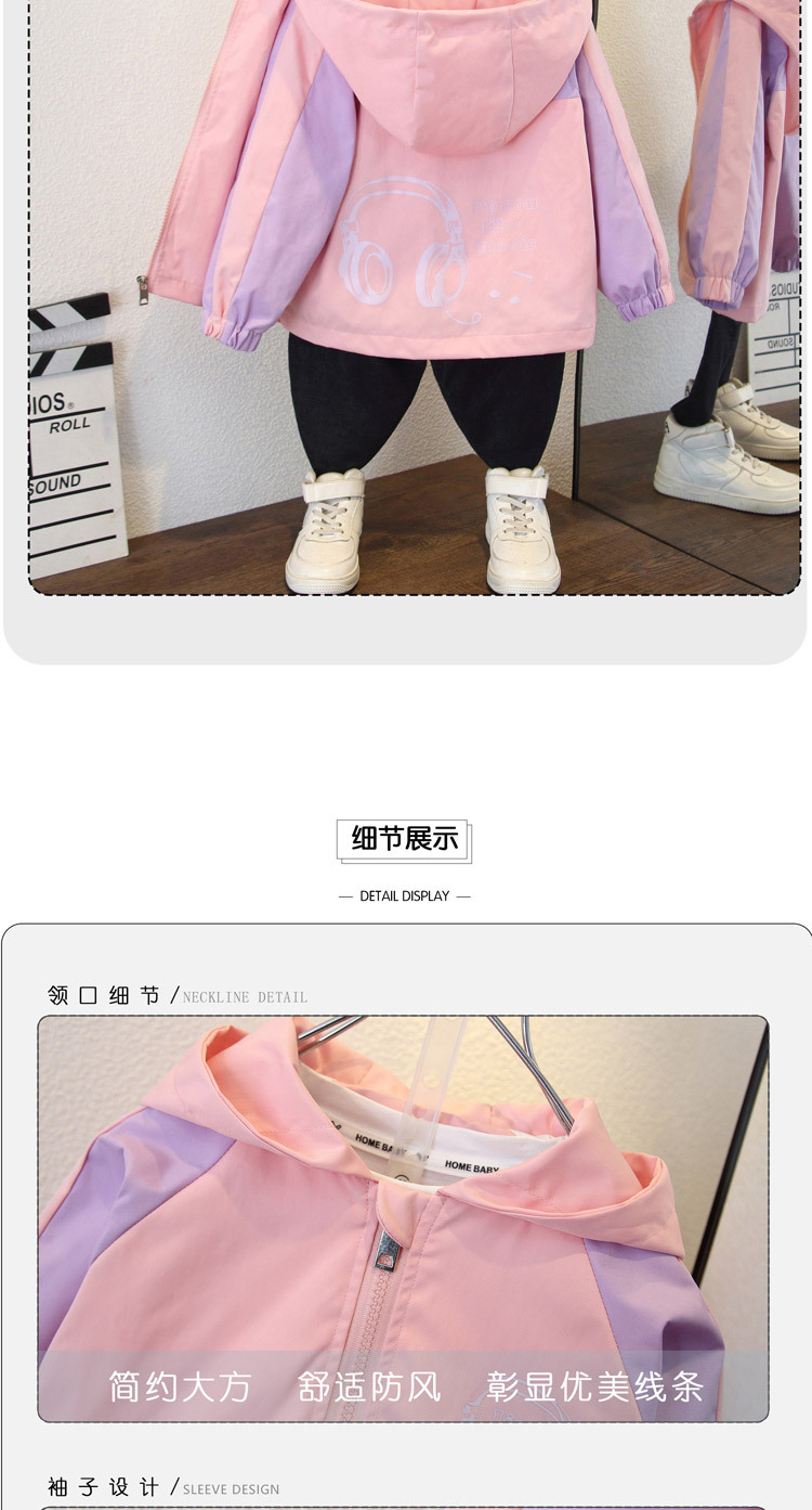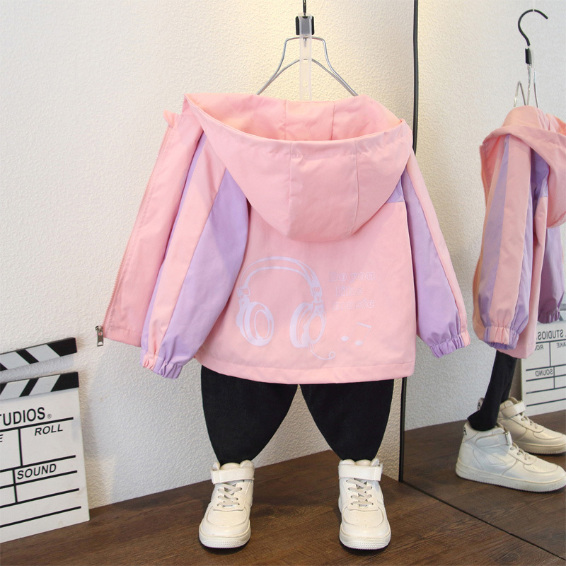 어린이 코트 봄 2025 새로운 소녀 서양 스타일 컬러 어울리는 후드 재킷 윈드브레이커 아기 소녀 트렌디 탑 봄스토어 가기