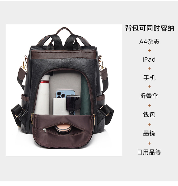 국경 간 유행 컬러 PU 가죽 캐주얼 여성 배낭 새로운 대용량 단일 어깨 이중 사용 유행 유행 유행 배낭스토어 가기