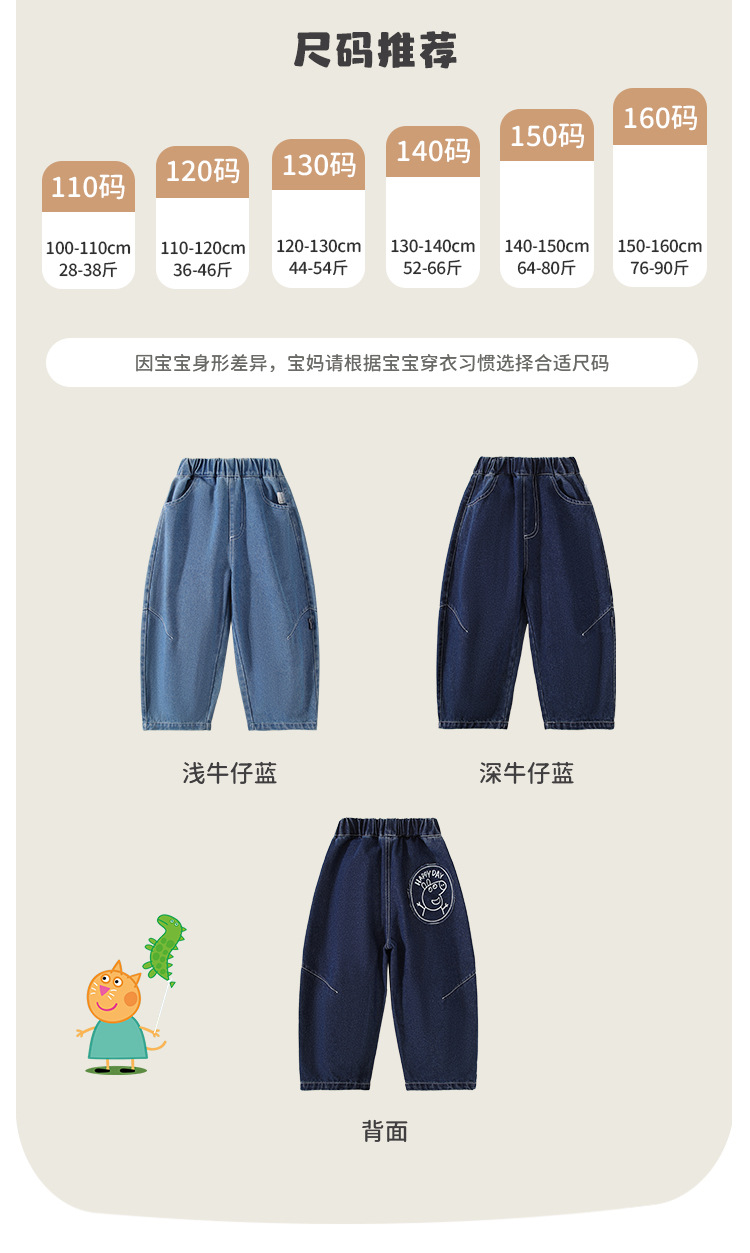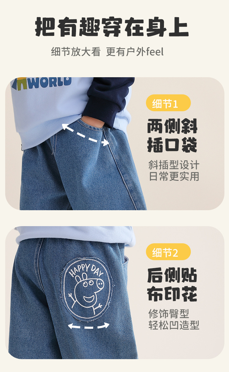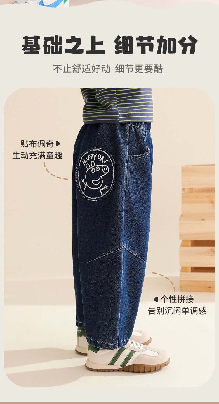 페파피그 봄 신상 아동용 청바지 남아 여아용 부드러운 데님 스트레이트 팬츠 다용도 캐주얼 긴바지스토어 가기