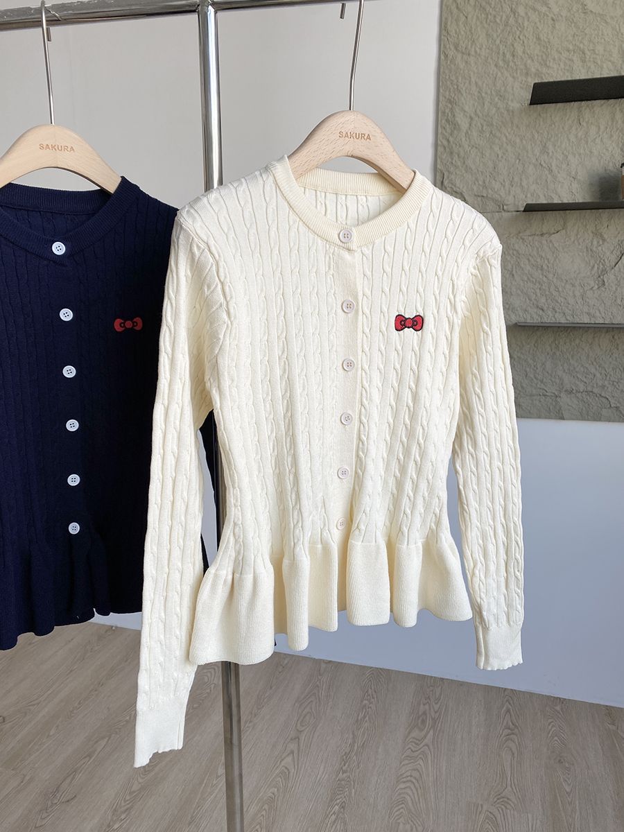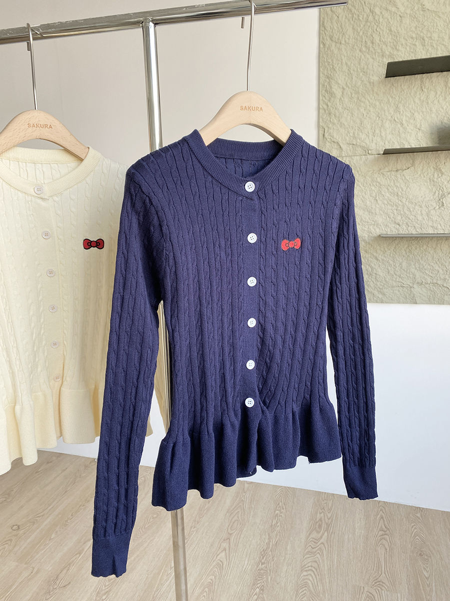 여성용 자수 활 트위스트 니트 카디건 여성용 봄 새로운 슬림 핏 싱글 브레스트 헤드 레이스 스웨터 탑스토어 가기