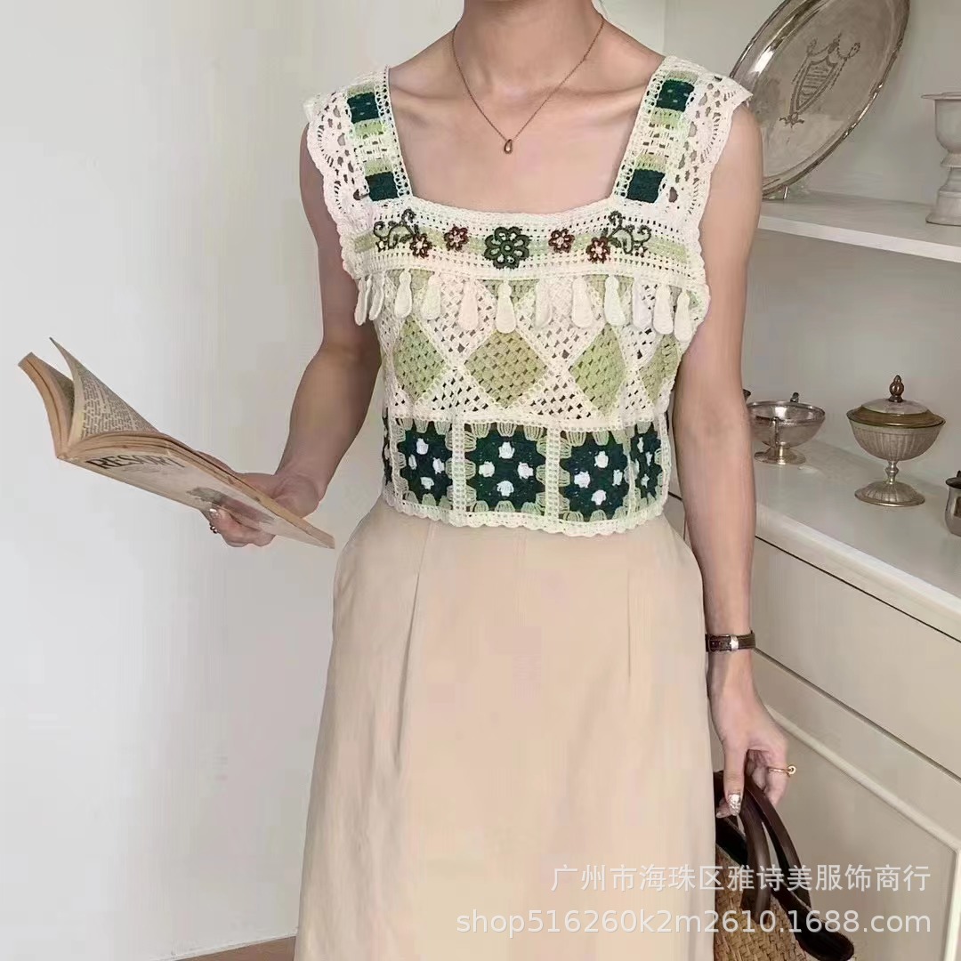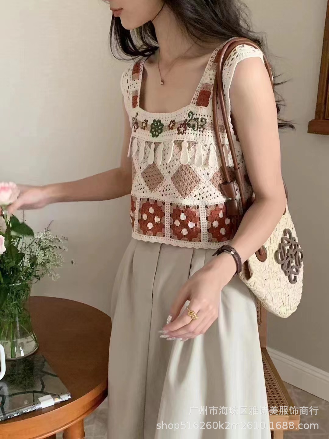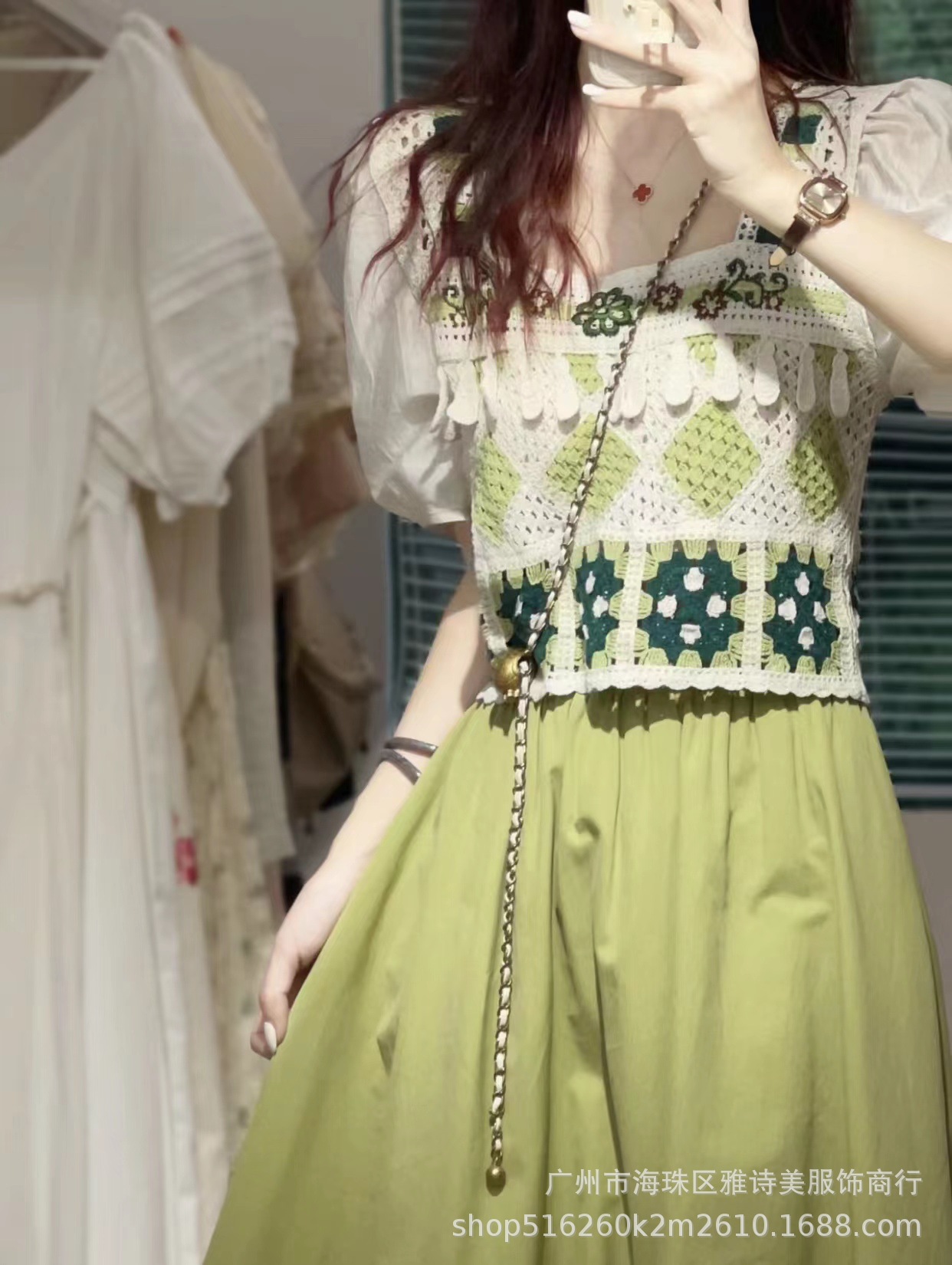중국 스타일 빈티지 스티칭 퍼프 슬리브 쉬폰 셔츠 여성의 봄 새로운 디자인 센스 크로 셰 뜨개질 할로우 우아한 최고 트렌디스토어 가기
