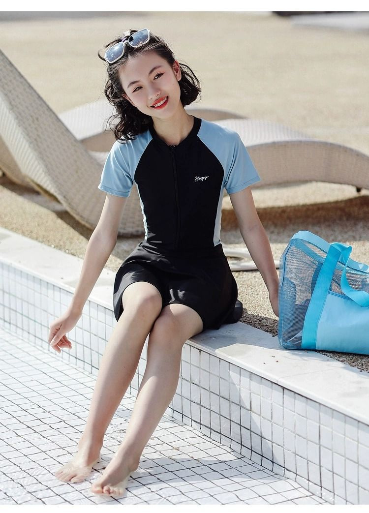 학생 수영복 원피스 스포츠 복서 바지 서양식 중 · 대형 어린이 보수 수영복 중학생 여학생 수영 투피스 세트스토어 가기