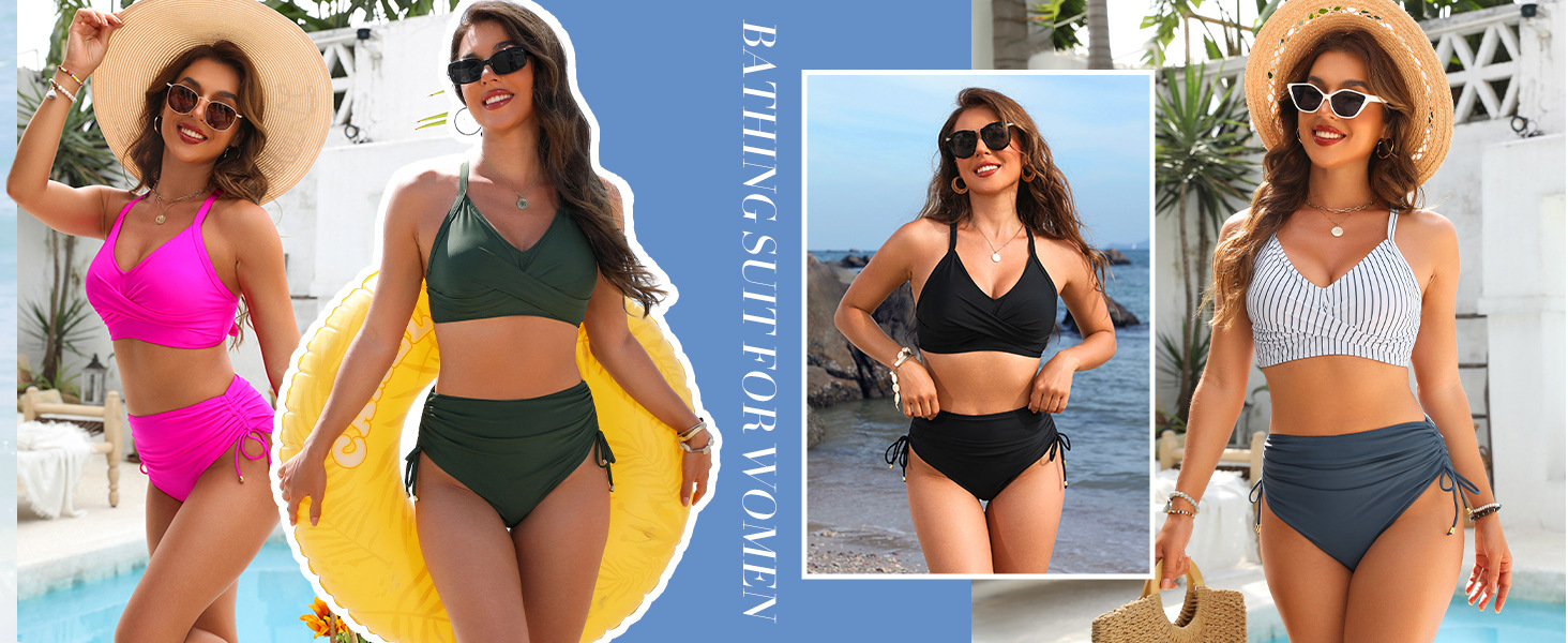 새로운 유럽과 미국의 국경 분할 수영복 섹시한 높은 허리 드로우 스트링 비키니 세트 아마존 비키니 수영복스토어 가기