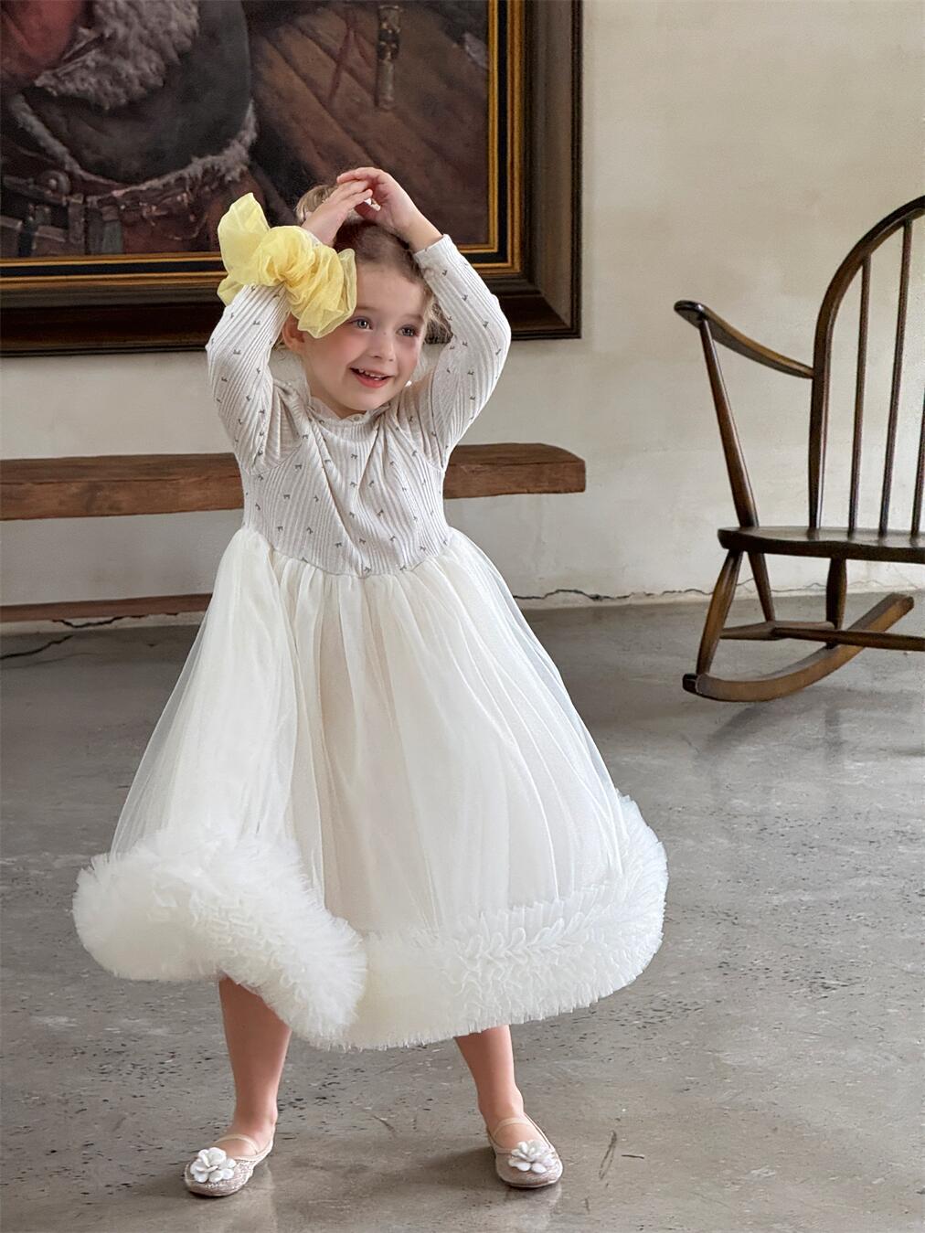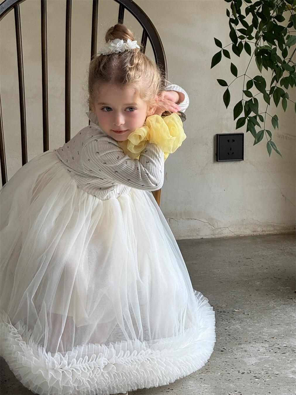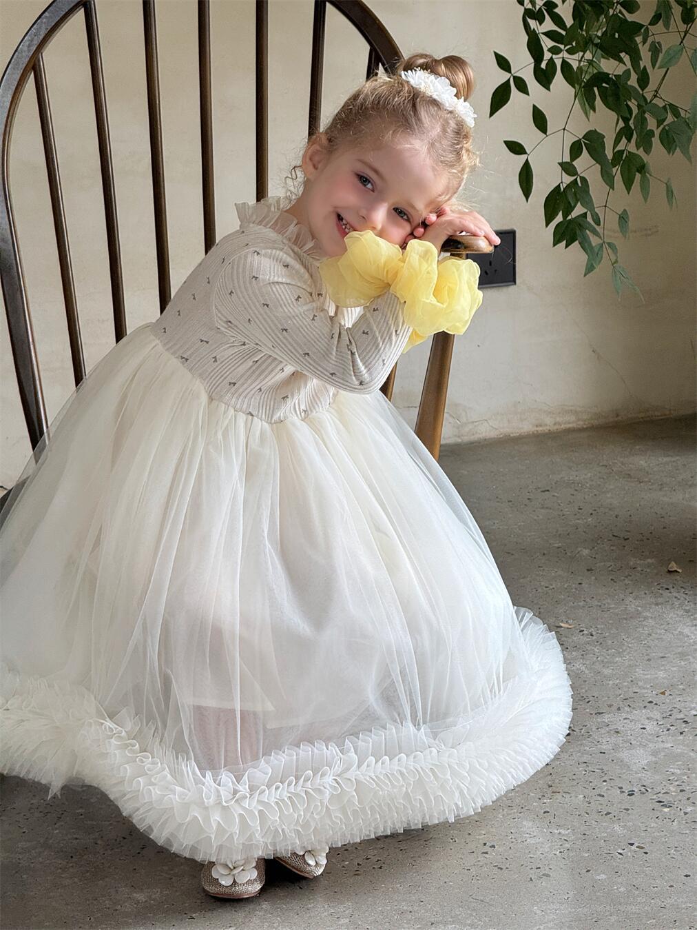 뾰족한 달걀 한국 아동복 2025 봄과 여름 새로운 소녀 원피스 긴 소매 귀여운 거즈 스커트 푹신한 치마 공주 치마스토어 가기