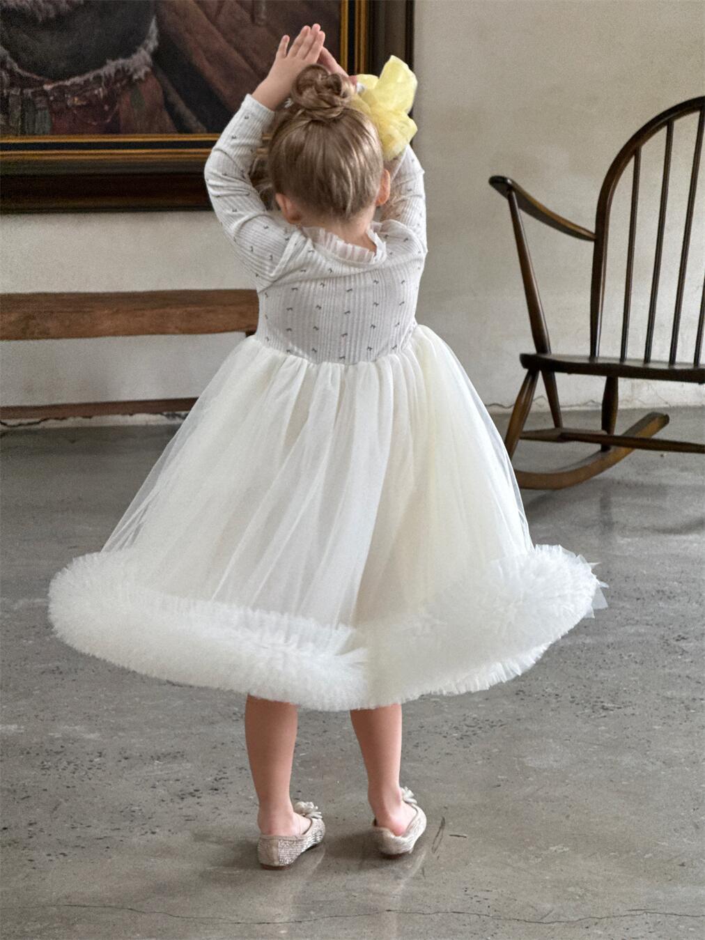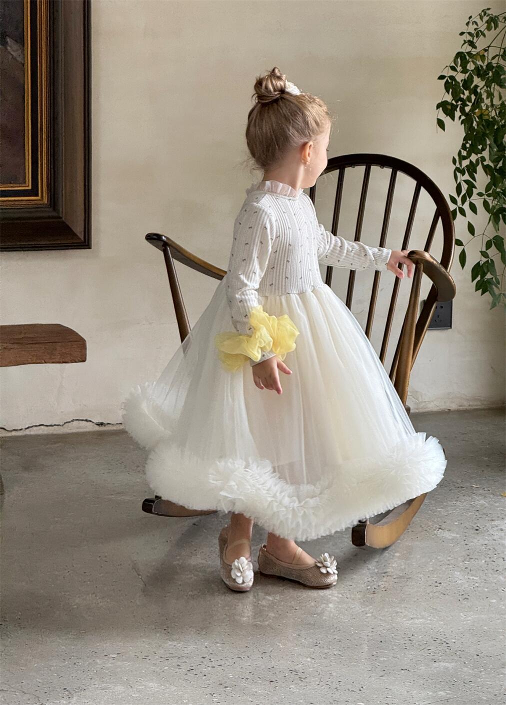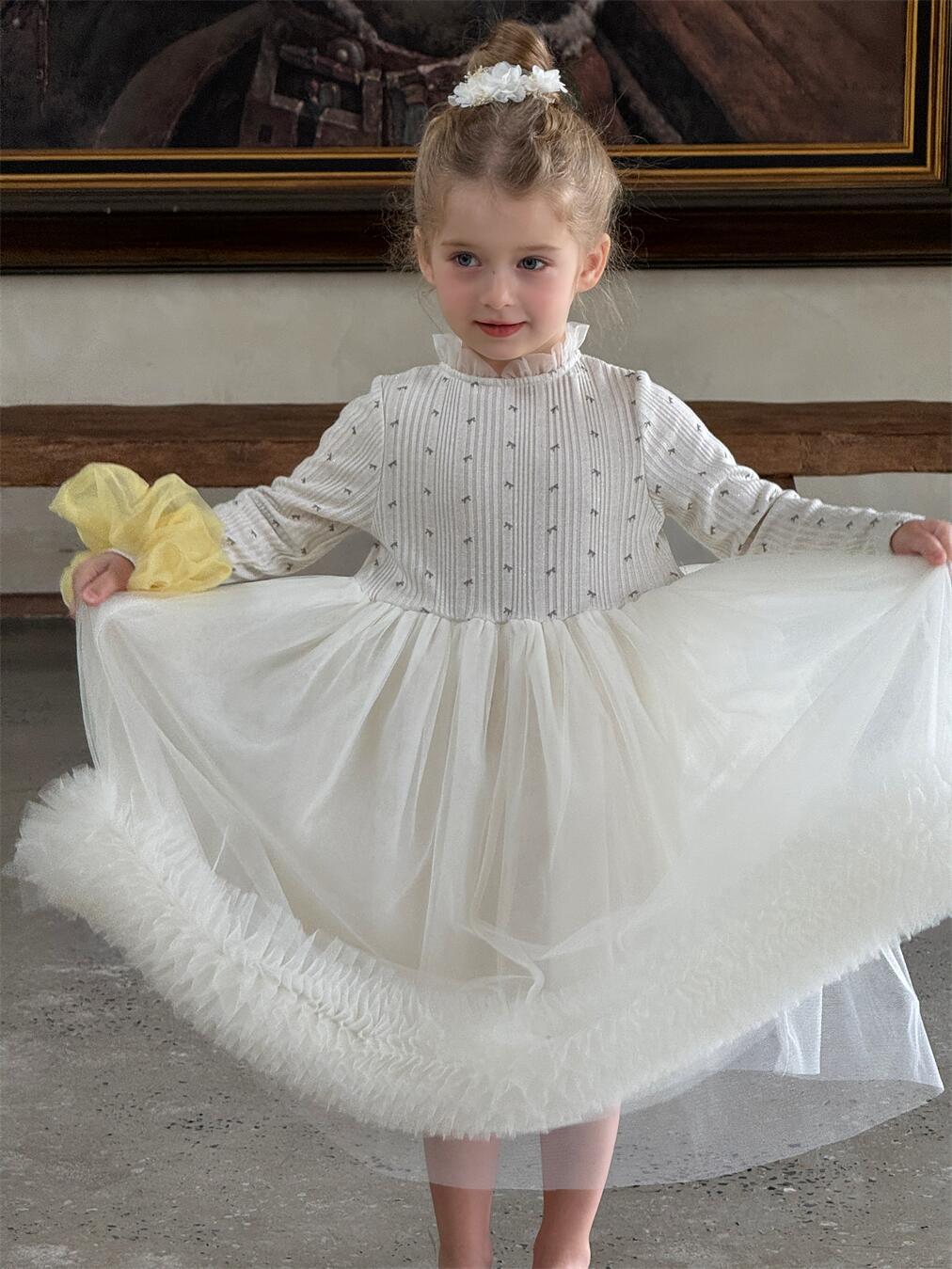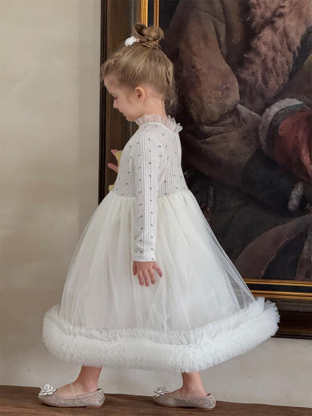 뾰족한 달걀 한국 아동복 2025 봄과 여름 새로운 소녀 원피스 긴 소매 귀여운 거즈 스커트 푹신한 치마 공주 치마스토어 가기