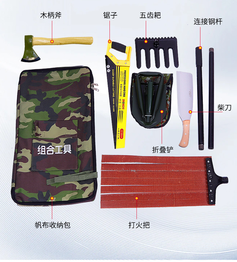 숲 조합 도구 키트 8 조각 산불 싸움 도구 세트 야외 훈련 구조 조합 도구 소방스토어 가기