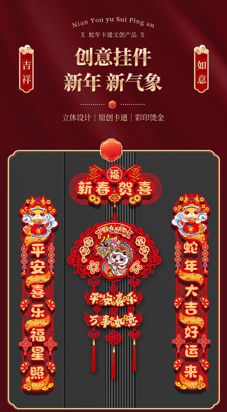 펜던트 펜던트 새해 장식 문 스티커 봄 축제 새해 3 차원 입장 문 새해 포춘 도매 종이스토어 가기