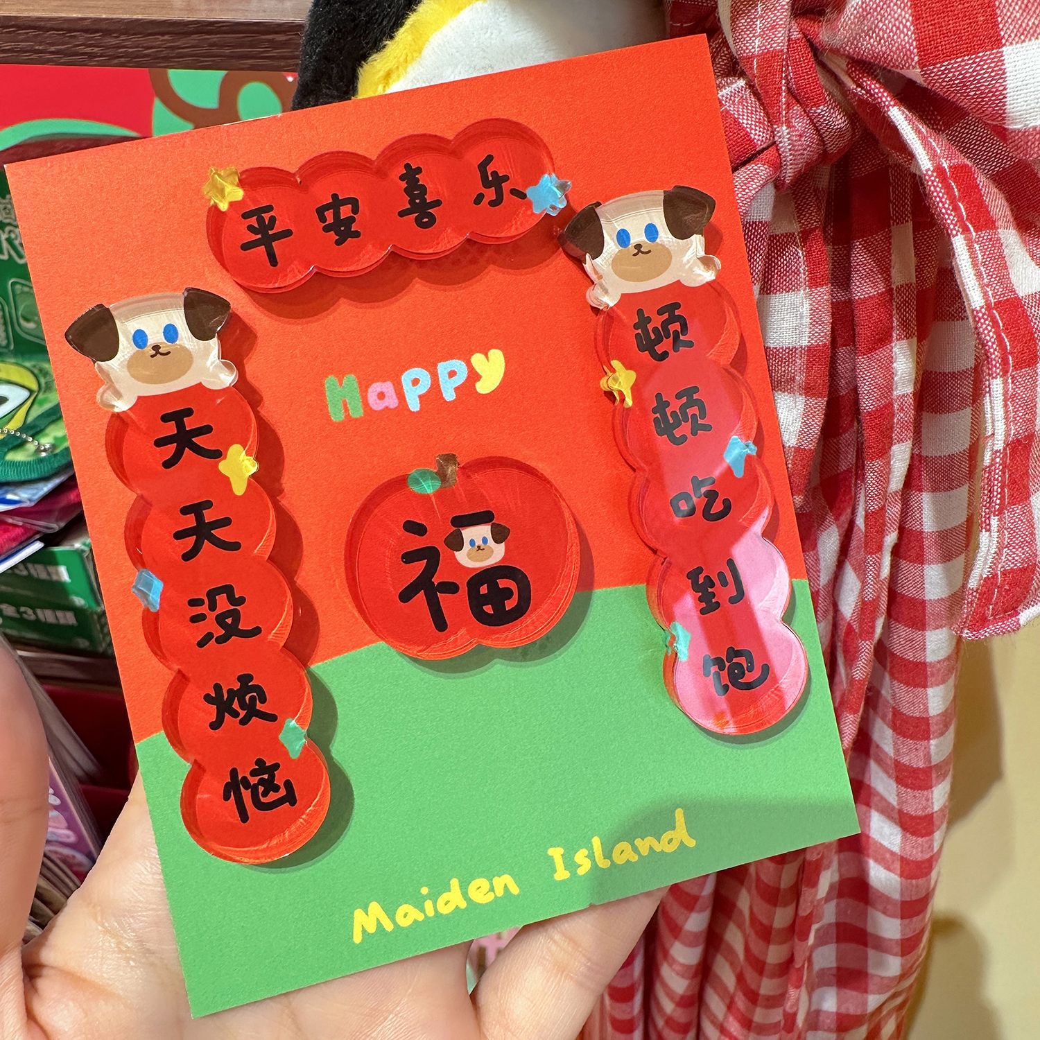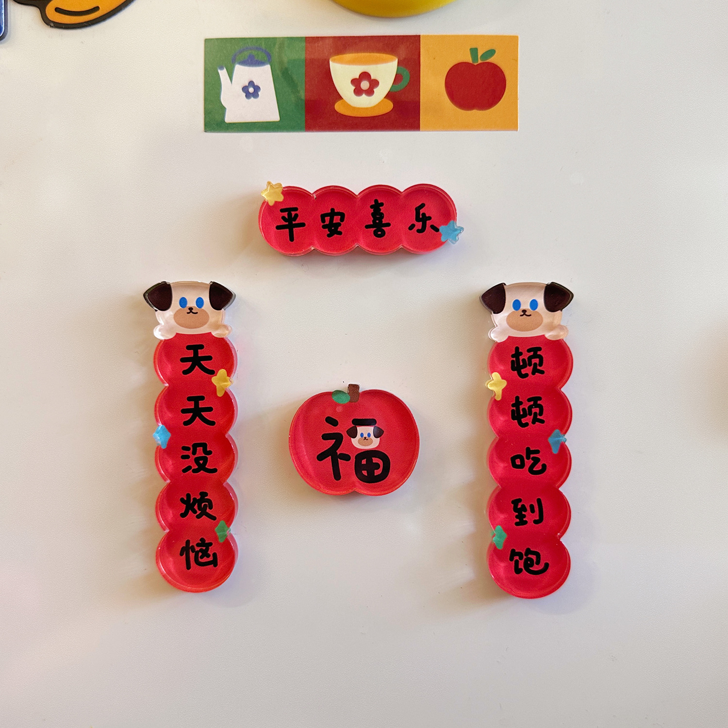 핑 해피 냉장고 스티커 귀여운 구정 봄 축제 아크릴 장식 스티커 강아지 마그네틱 스티커 냉장고 스티커 도매스토어 가기