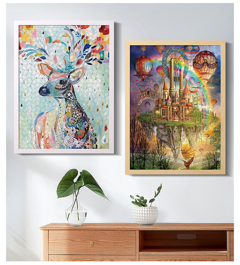 단단한 나무 직소 퍼즐 사진 프레임 1000 조각 직소 퍼즐 프레임 300 500 2000 조각 70x50x75 플랫 차트 장착스토어 가기